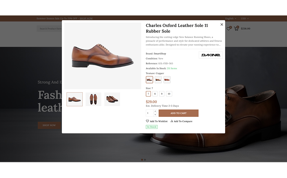 Leathux comes packed with user-friendly features including advanced navigation menus, quick view options, product comparisons, wishlist functionality, and an intuitive Ajax cart. The theme also supports multiple languages and currencies, making it ideal for international footwear brands. With its SEO-optimized structure and fast-loading pages, you can improve your visibility in search results and deliver a smoother user journey.