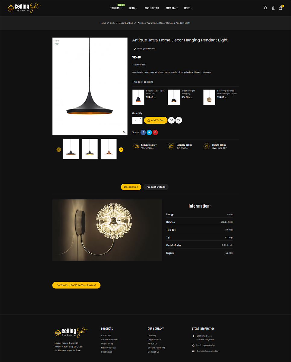 Lighting - Modern Lamp, Lighting Online Store PrestaShop Theme is a clean and dark design for ceiling light, desk lamps, Lights, Home Decor, Interior, Furniture, Flower, Electronic, Modern, Digital, Appliances, Craft, Culture, Minimal and MultiPurpose Store. Did you know: This template requires NO coding? We've already included all the required features. Shout out to all the Lighting or business owner! this template is designed for you! created with tons of eye-catching Stores to gain all the interest of your audience. Also, this theme comes with Mobile-Friendly Your new website will be able to be viewed across all devices. Lighting supports Right to left (RTL) languages for comfortable use anywhere in the world!!
