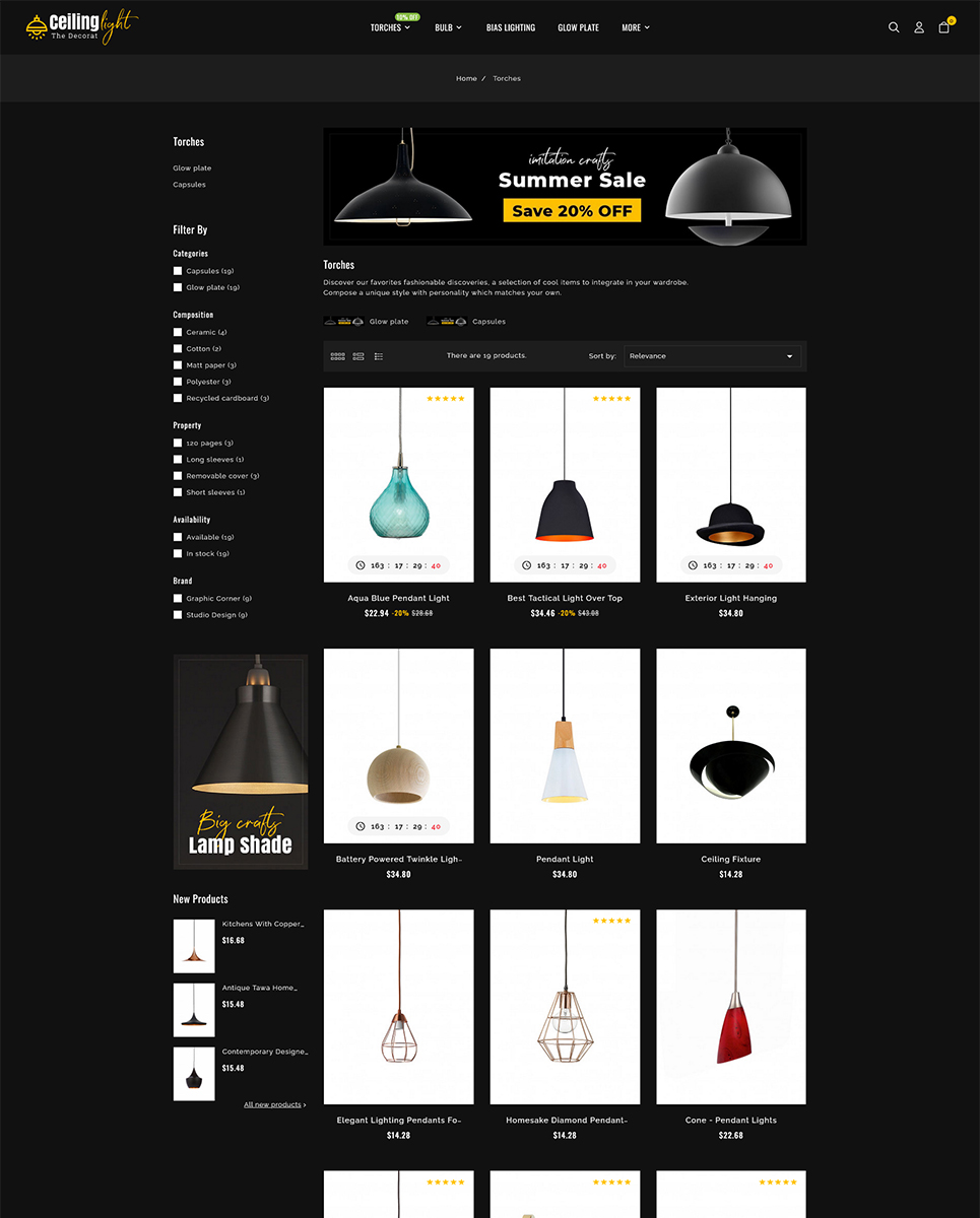 Lighting - Modern Lamp, Lighting Online Store PrestaShop Theme