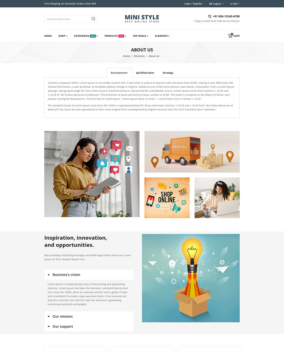 MiniStyle includes a Quickstart Installation Package, enabling you to replicate the demo and get your store running quickly with just a few clicks. Its built-in Mega Menu Builder allows for thoughtful category organization and improved navigation. With AJAX-powered features like smart search, product filters, quick view, and smooth cart updates, MiniStyle ensures a fast and seamless shopping experience for your customers.