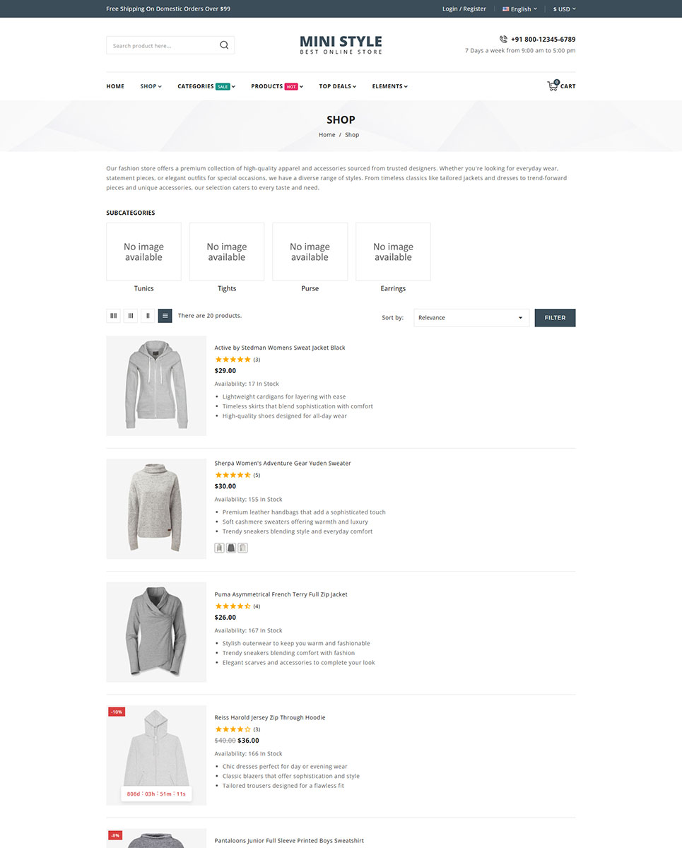 Whether you're showcasing stylish apparel, seasonal collections, or chic accessories, MiniStyle – Minimal Fashion Store PrestaShop Responsive Theme offers the perfect balance of elegance, performance, and simplicity to create a high-end fashion storefront with ease.