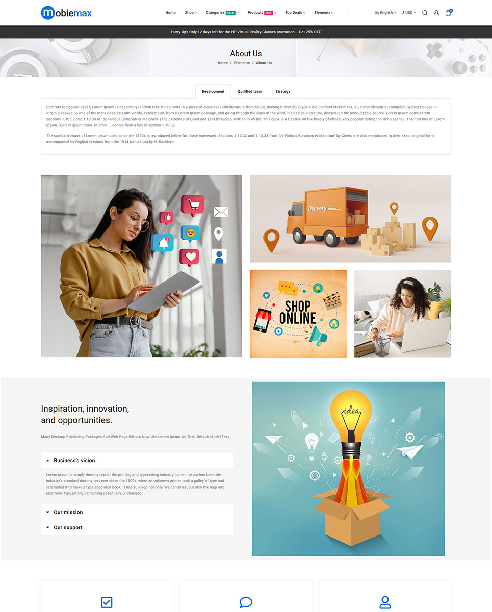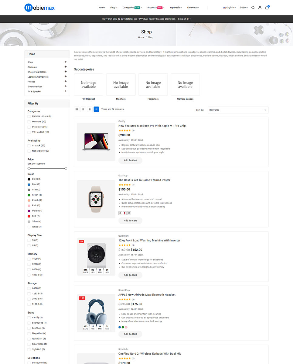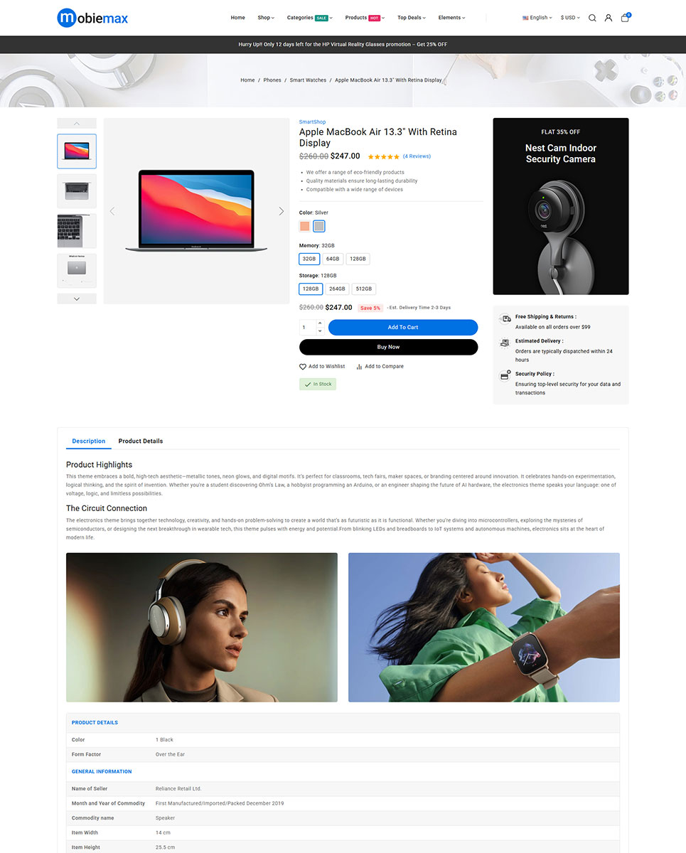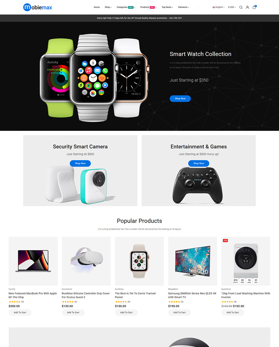Optimized for speed, SEO, and conversions, Mobiemax includes a quickstart installation package, so you can launch your electronics store in minutes. Whether you’re selling top-brand mobiles, tech gadgets, or smart home devices, Mobiemax combines modern design, flexibility, and powerful functionality to help your business stand out in the fast-paced electronics market.