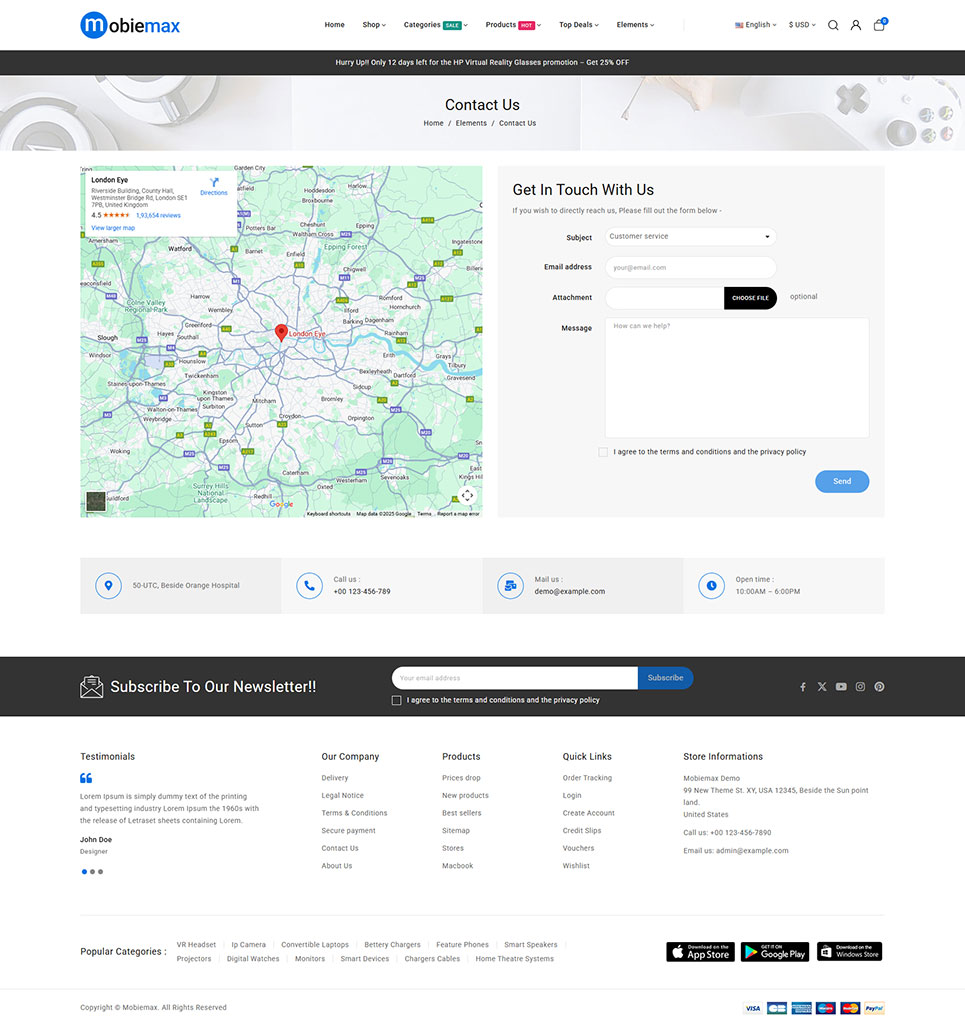 Built using the Elementor builder and theme customizer module, Mobiemax offers complete design flexibility—allowing you to customize layouts, colors, fonts, and homepage sections without any coding skills. Its fully responsive and mobile-optimized design ensures your store looks sharp and performs flawlessly across all devices, providing customers with a smooth and engaging shopping experience.