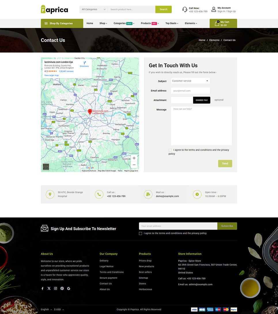 Paprica - Spice Food Store PrestaShop Responsive Theme is a beautifully crafted and feature-rich theme designed for online stores selling spices, herbs, organic food, groceries, and other culinary products. Built with the powerful Elementor Builder, it offers complete design flexibility, allowing you to easily customize layouts and sections without any coding skills.