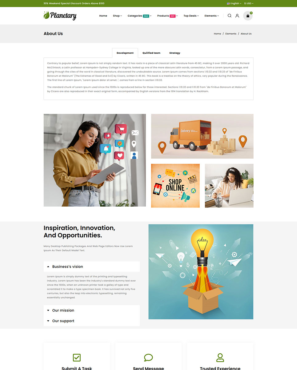 Planetary includes both Quickstart Installation to instantly replicate the demo design and Manual Installation files for more customized setup workflows. Enhanced with AJAX-based features such as quick view, live product search, add-to-cart, and smart layered filtering, the theme ensures ultra-smooth browsing without page reloads.