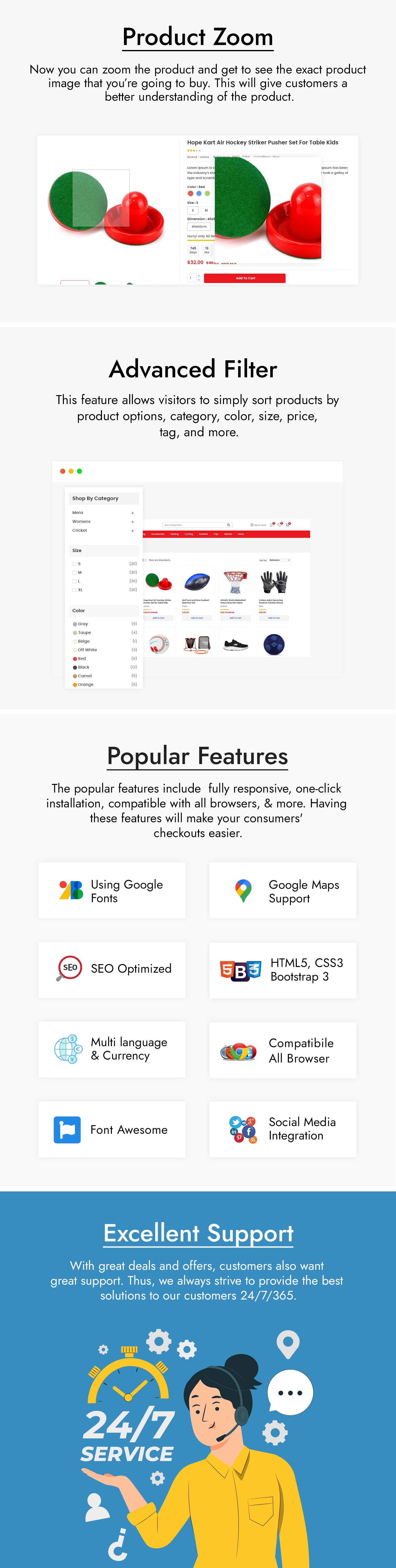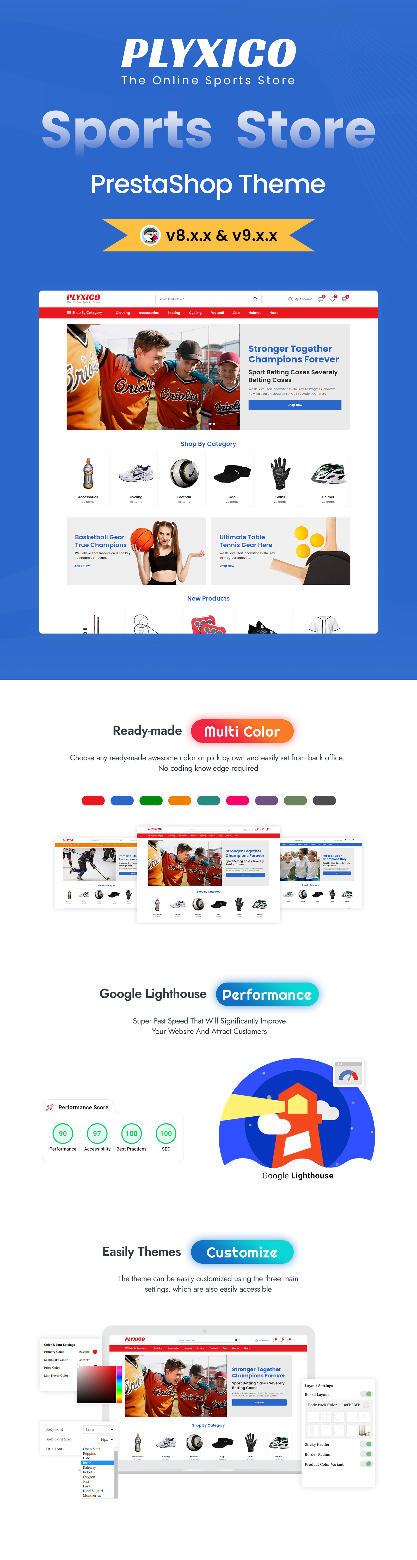 Plyxico: A Store for Sports, Gaming, and Fitness PrestaShop Theme is a vibrant and contemporary solution designed for internet retailers of fitness, gaming, and athletic equipment. Plyxico guarantees a seamless shopping experience across all platforms with its visually appealing and responsive design. To improve the user experience and boost sales, it has sophisticated product filters, fast view options, a secure checkout, and PrestaShop compatibility. It is perfect for creating a high-performance store that combines practicality with dynamic design because of its SEO optimization, quick loading speed, multilingual support, and ease of a modification. Ideal for sports companies that are bold and dynamic ones.