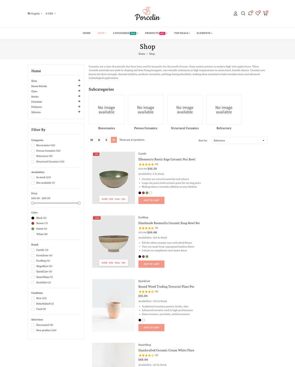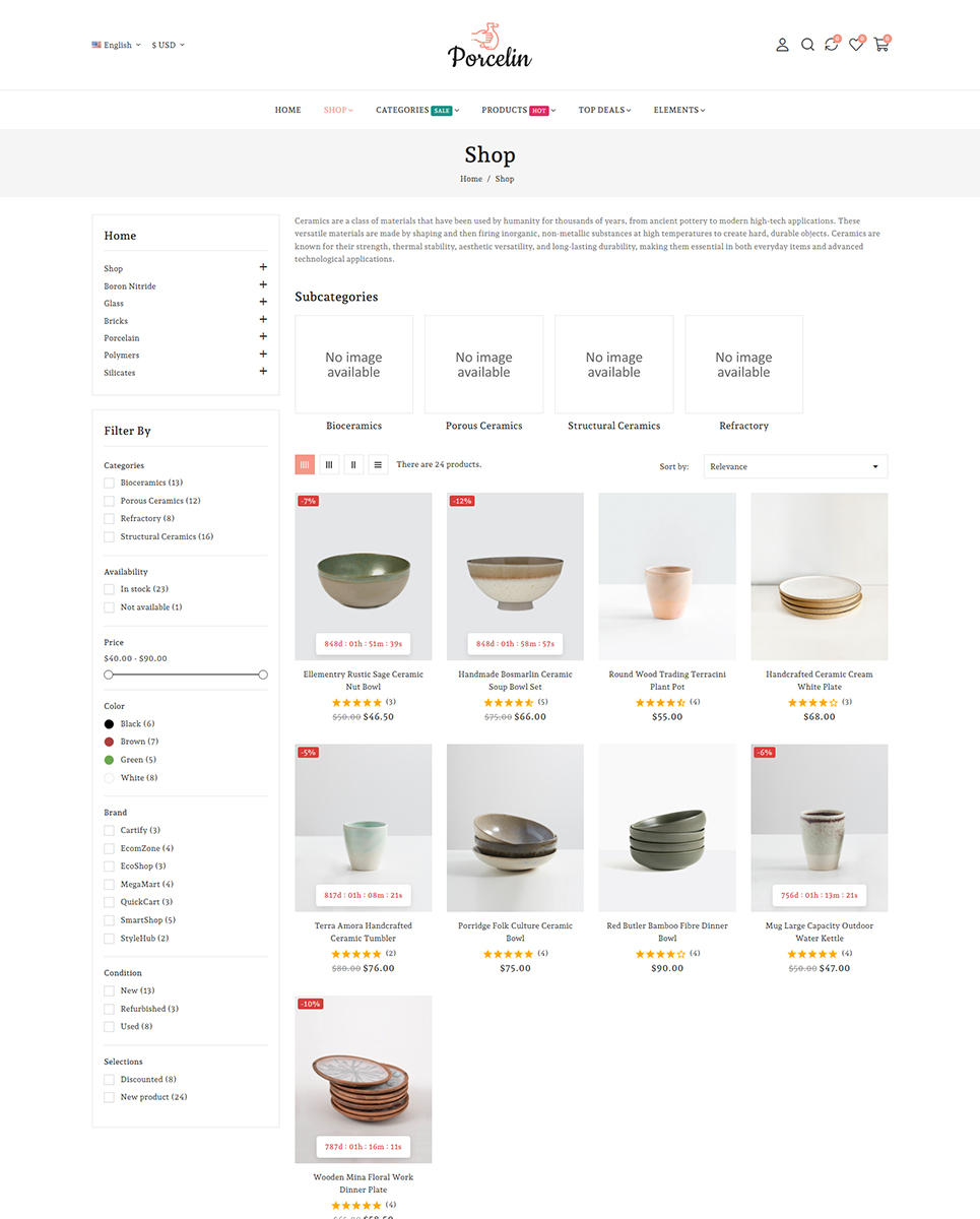 Porcelin - Art and Ceramic Store PrestaShop Theme