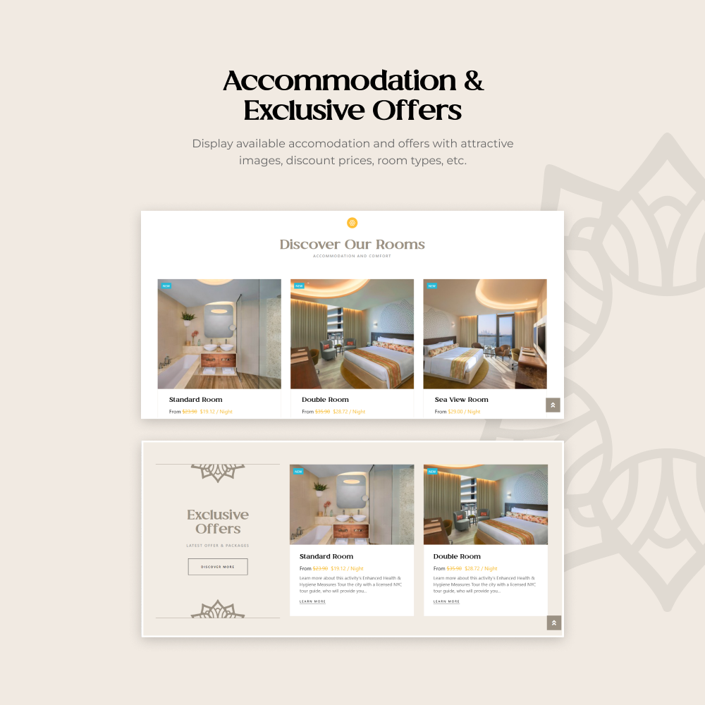 Being built on the best Booking Prestashop module and Page Builder Elementor, Ps Nouhotel Elementor allows you to check, search and book for the wanted room and search from user-friendly booking form. You can easily check for available rooms and services with date, time, room types, number of children and adults, etc.