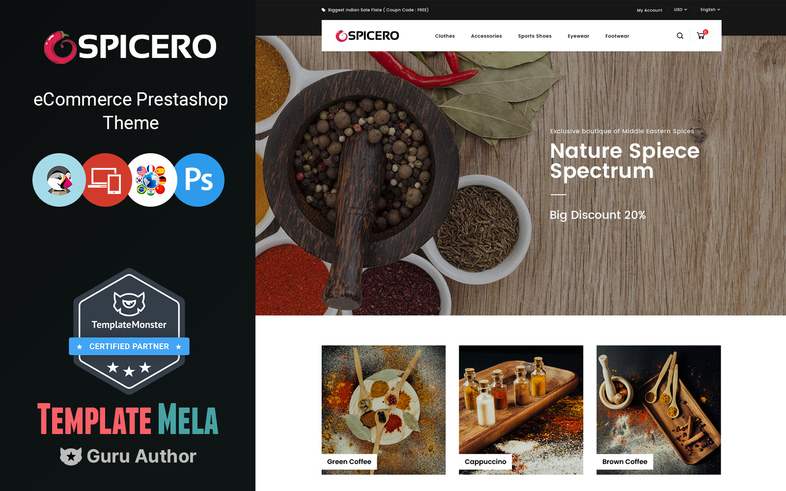 Spicero Prestashop Responsive Theme is fully customizable features and suitable for e-commerce websites of multipurpose store. Spicero Theme package including One Click (Quick-Start) to get a replication of our theme demo site on your store web site with including same content, graphics, theme settings & layouts. Spicero Prestashop Theme has a number of functioning features of a modern template for multi purpose in building a web site. Spicero Theme supporting the latest version of Prestashop.