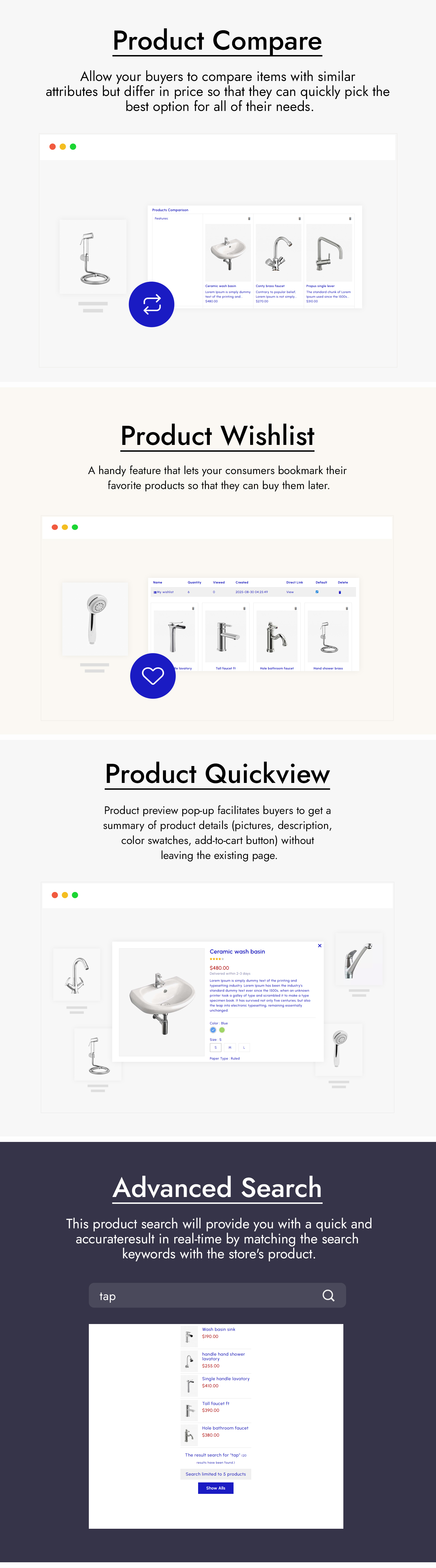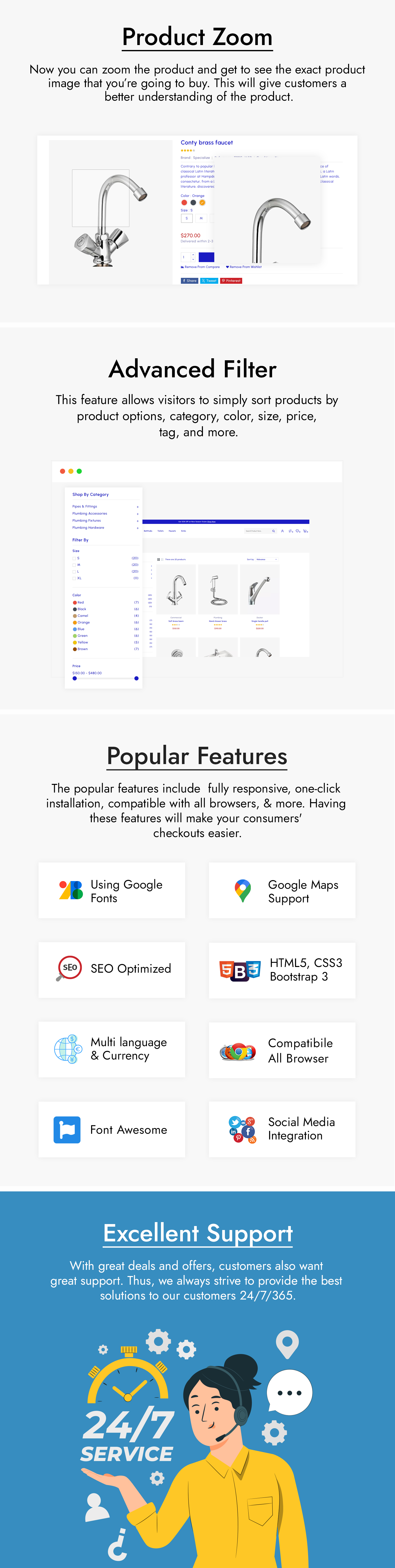 Tapbess: Sanitary, Bathroom, and Plumbing For stores selling plumbing supplies, sanitary gear, and bathroom accessories, PrestaShop Theme is a sleek, contemporary eCommerce solution. Its user-friendly navigation, sophisticated filtering, and fast product views improve the user experience, and its fully responsive design guarantees seamless performance on all devices. Tapbess Theme provides versatility and user-friendliness with its secure checkout, PrestaShop integration, and customisable layouts. The theme is perfect for international businesses because it is SEO-optimized, loads quickly, and supports multiple languages and currencies. For building a polished, high-converting online store for plumbing and bathroom necessities, the Tapbess theme is ideal.