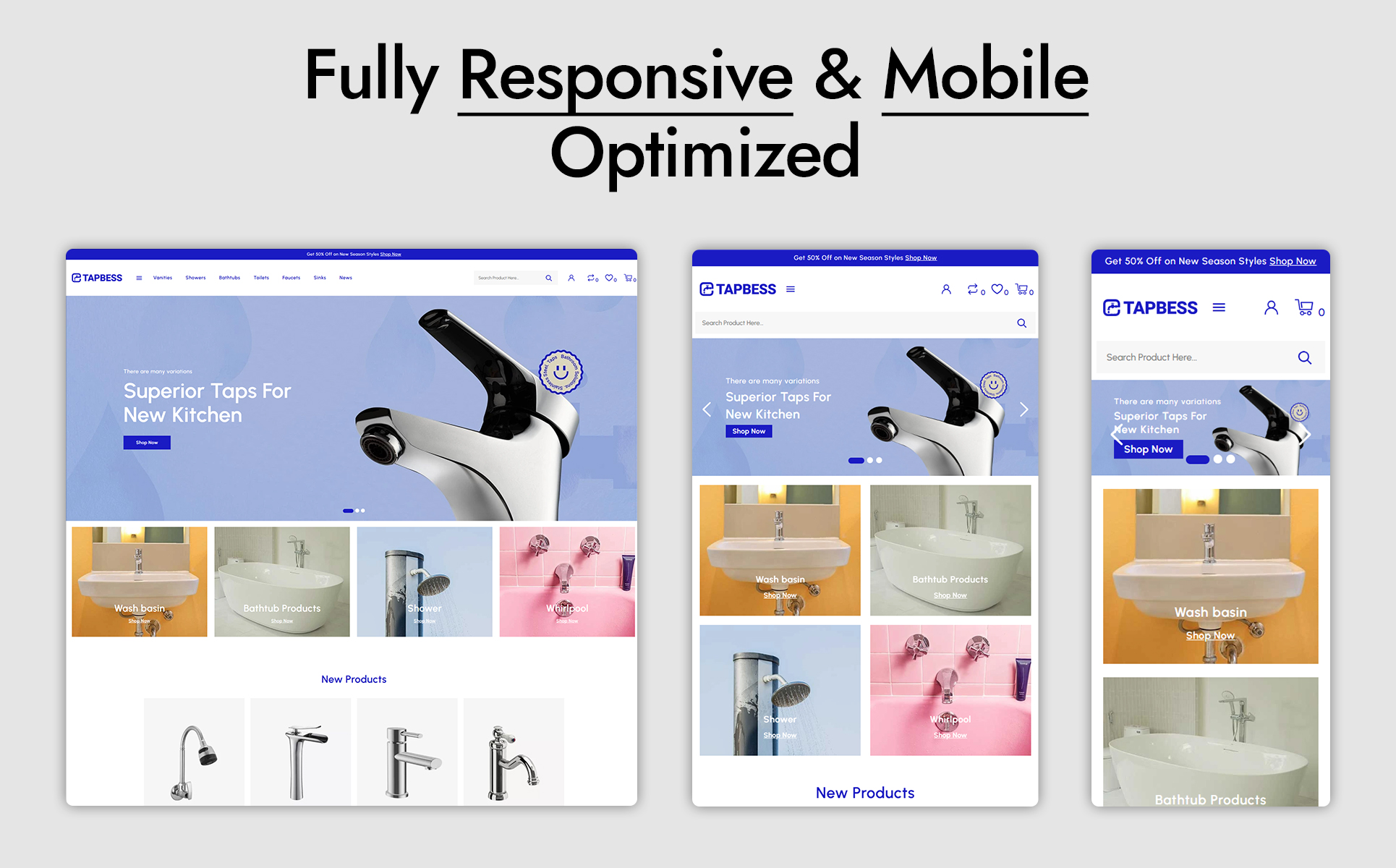 Tapbess: Sanitary, Bathroom, and Plumbing For stores selling plumbing supplies, sanitary gear, and bathroom accessories, PrestaShop Theme is a sleek, contemporary eCommerce solution. Its user-friendly navigation, sophisticated filtering, and fast product views improve the user experience, and its fully responsive design guarantees seamless performance on all devices. Tapbess Theme provides versatility and user-friendliness with its secure checkout, PrestaShop integration, and customisable layouts. The theme is perfect for international businesses because it is SEO-optimized, loads quickly, and supports multiple languages and currencies. For building a polished, high-converting online store for plumbing and bathroom necessities, the Tapbess theme is ideal.
