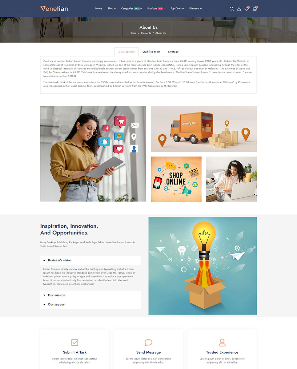 Developed using the Elementor builder and theme customizer module, Venetian allows you to easily manage your store’s layout, typography, colors, and banners—all without coding. Its fully responsive design ensures your website looks perfect across all devices, offering a seamless shopping experience whether your customers browse from desktops, tablets, or smartphones.