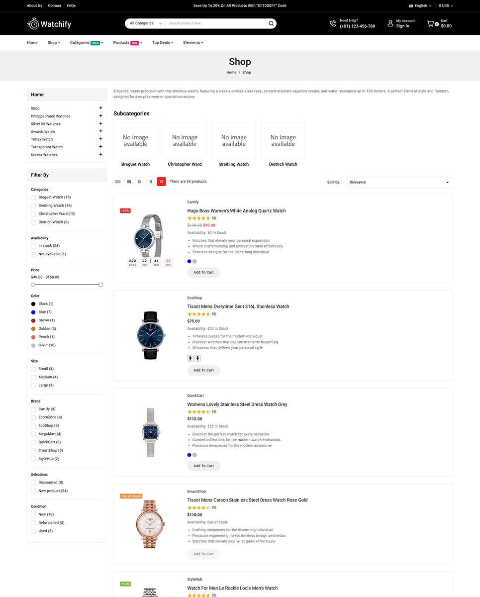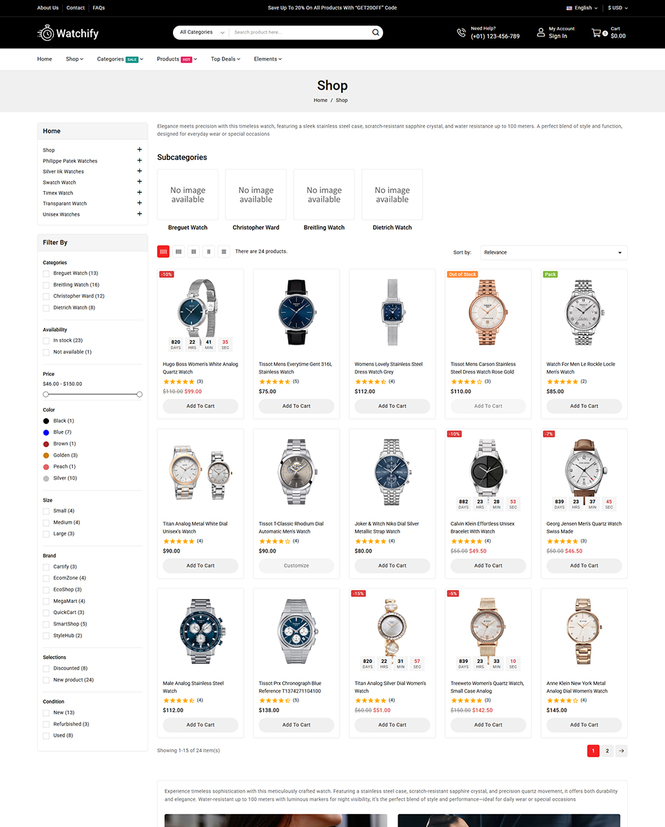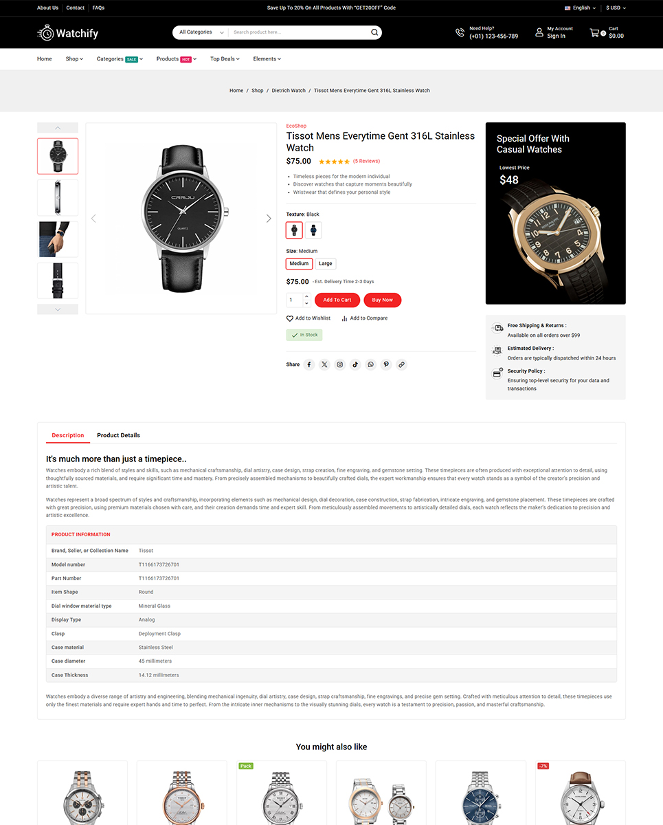 In addition to these features, Watchify offers a variety of customization options, including multiple color schemes, font options, and layout variations. The theme is also optimized for speed and SEO, ensuring that your website loads quickly and ranks higher in search engine results.