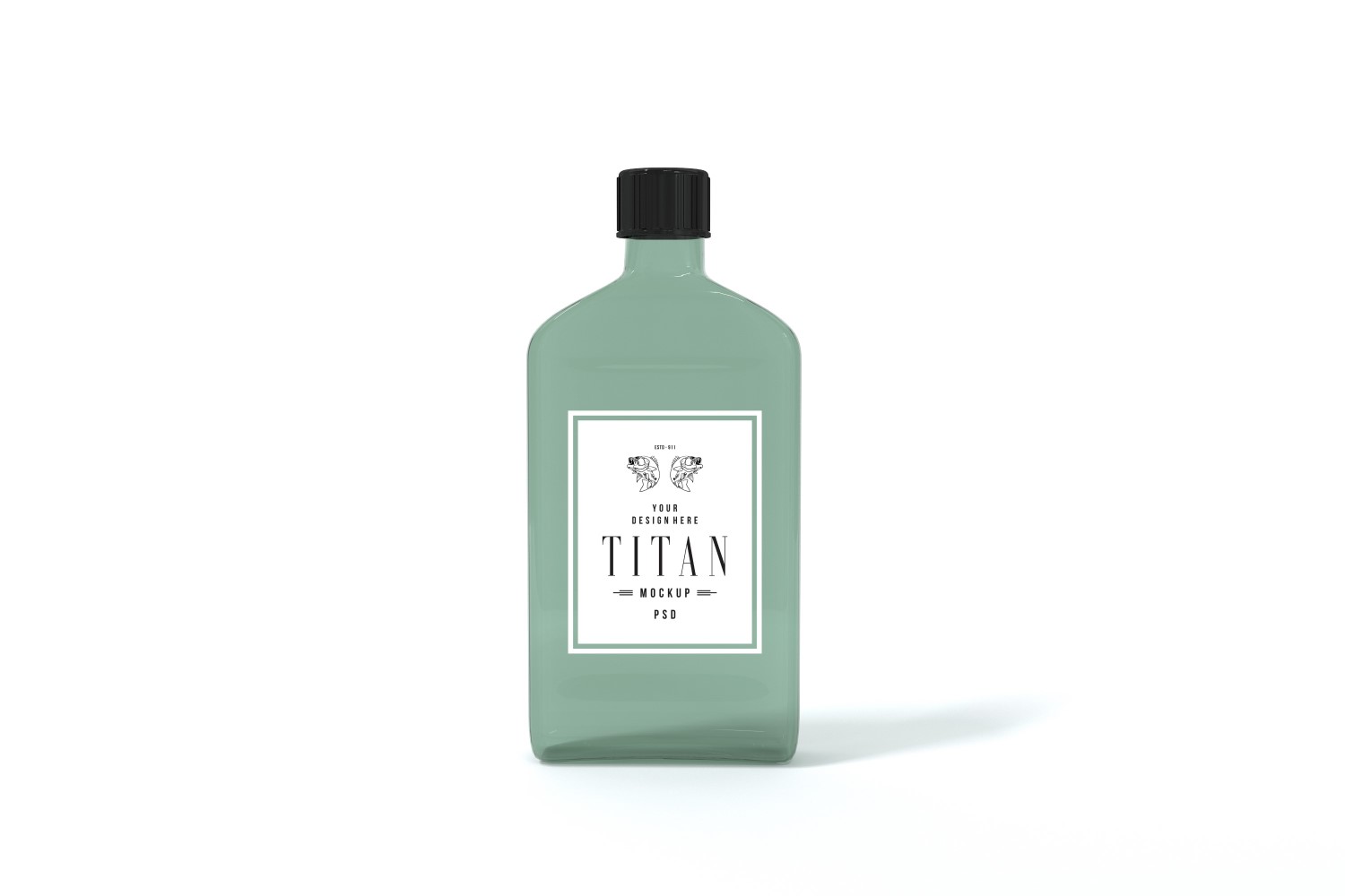 3d render of a clear Titan bottle with a black cap isolated on gray background Product Mockup