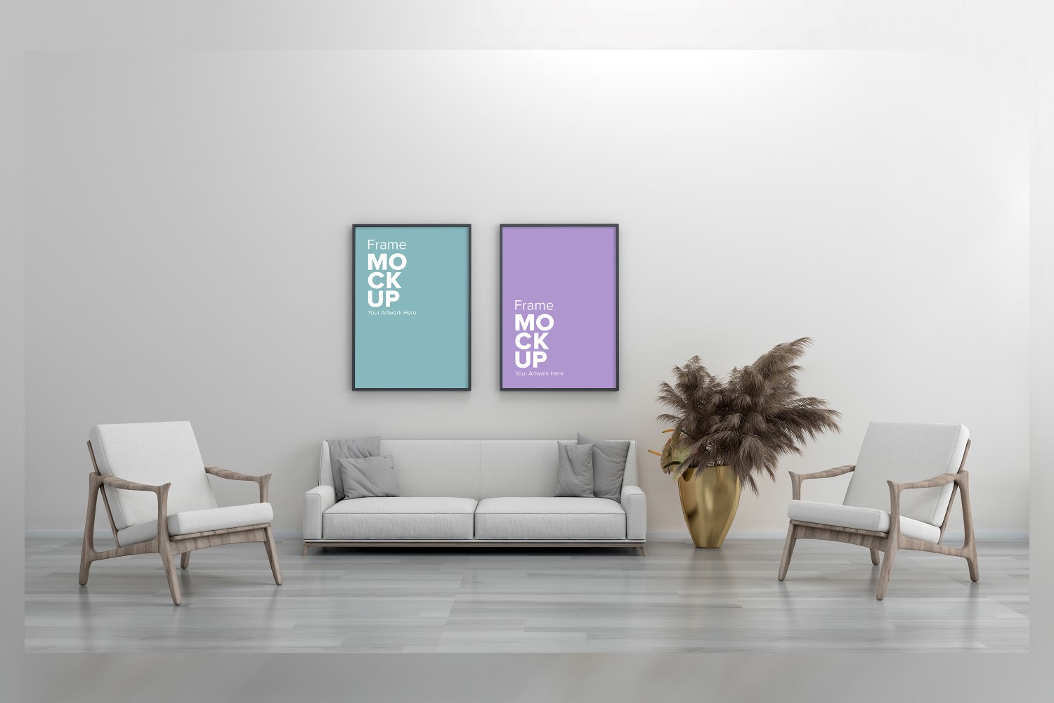3D Rendered Interior Living Room Mockup With Two Frame Mockup Product Mockup