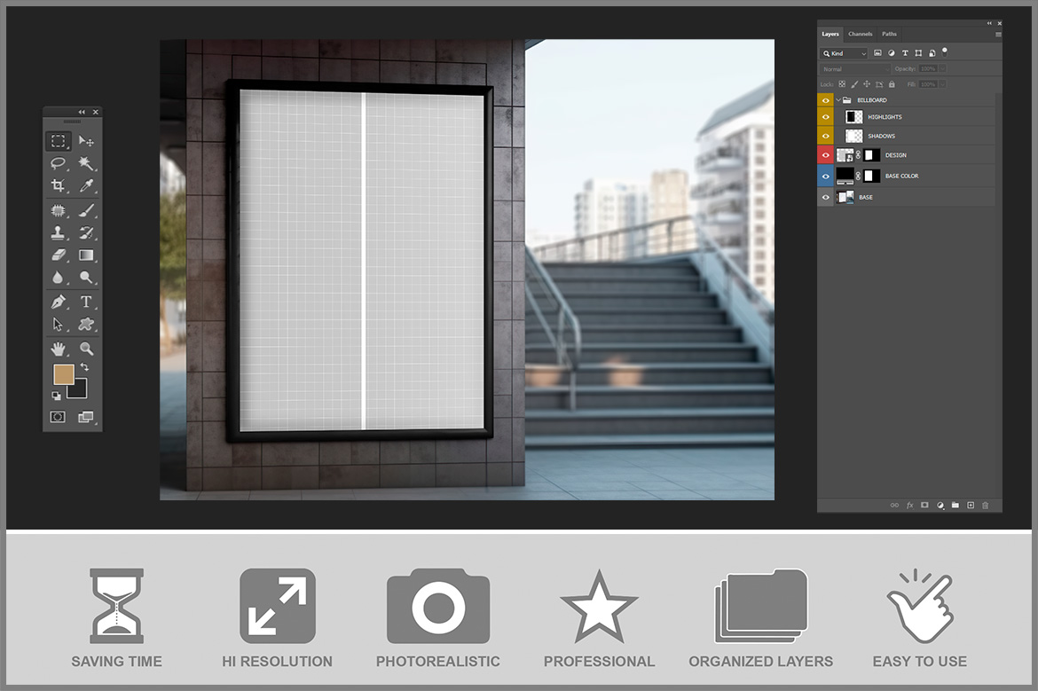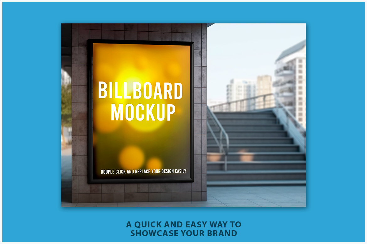 billboard mockup for advertising and banner lets you apply your designs easily using layers, masks, and smart objects. Simply drag and drop into a Smart Object. High resolution (4000 x 3000 pixels). Save time and money with this detailed, easy-to-use mockup.
