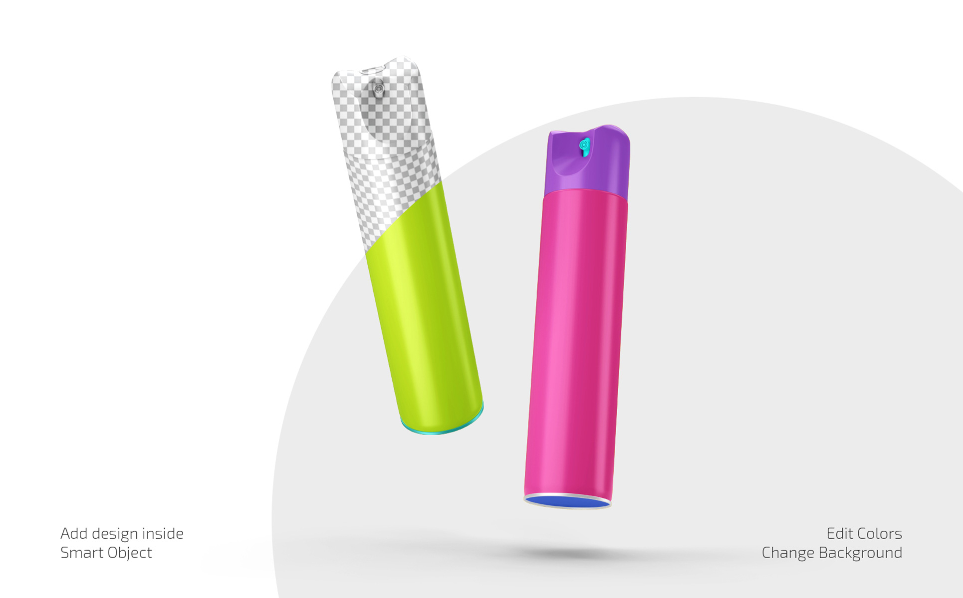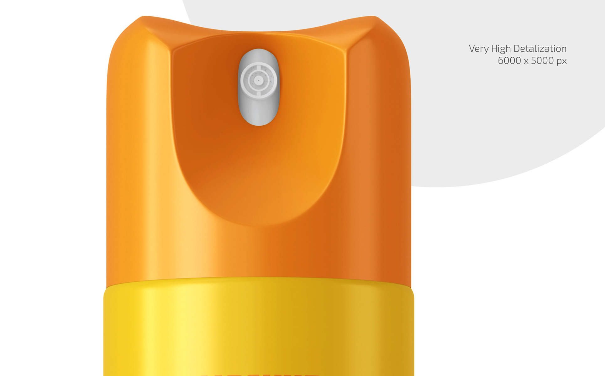 Capture attention with vibrant design and realistic presentation by simulating an aluminum aerosol bottle in high resolution. After all, the trend toward clean, fresh, and eco-friendly packaging is growing stronger every year. Therefore, these mockups allow you to demonstrate these values to potential buyers.