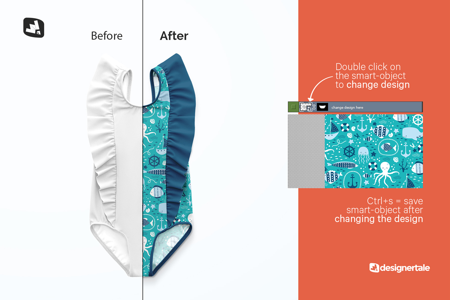Summer is here and it’s time for the family to play outside in the pool or on the beach. Baby girls in their cute swimsuits are the cutest thing in the world. This baby girl’s ruffled swimsuit mockup gives you the perfect opportunity to present your summer patterns in the cutest way possible. This baby girl’s ruffled swimsuit mockup is simple and effective, yet professional and edgy. The kid’s swimsuit mockup has high-resolution photorealistic effects. The layers are perfectly organized and color-coded. The infant swimsuit mockup comes with a detailed instructional video to make your work process short and easy; which makes this swimsuit mockup a truly handy item have in your collection.