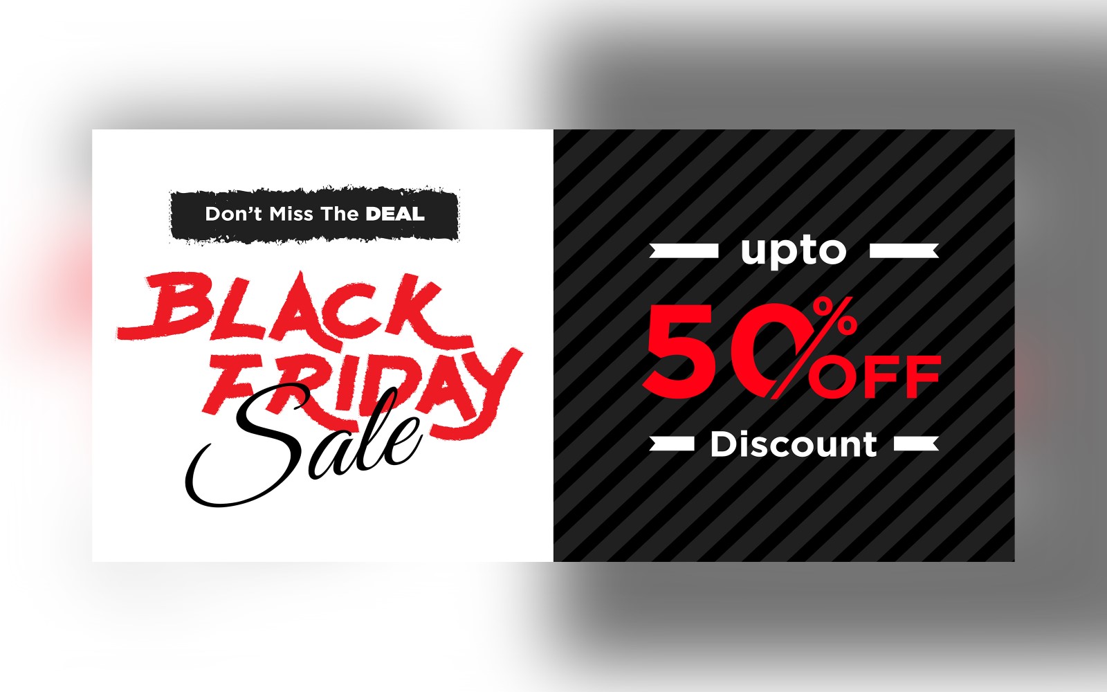 Black Friday Sale Banner With 50% Off Discount Design. Product Mockup