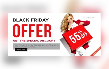 Black Friday Sale Banner With 55% Off Special Discount Design Template