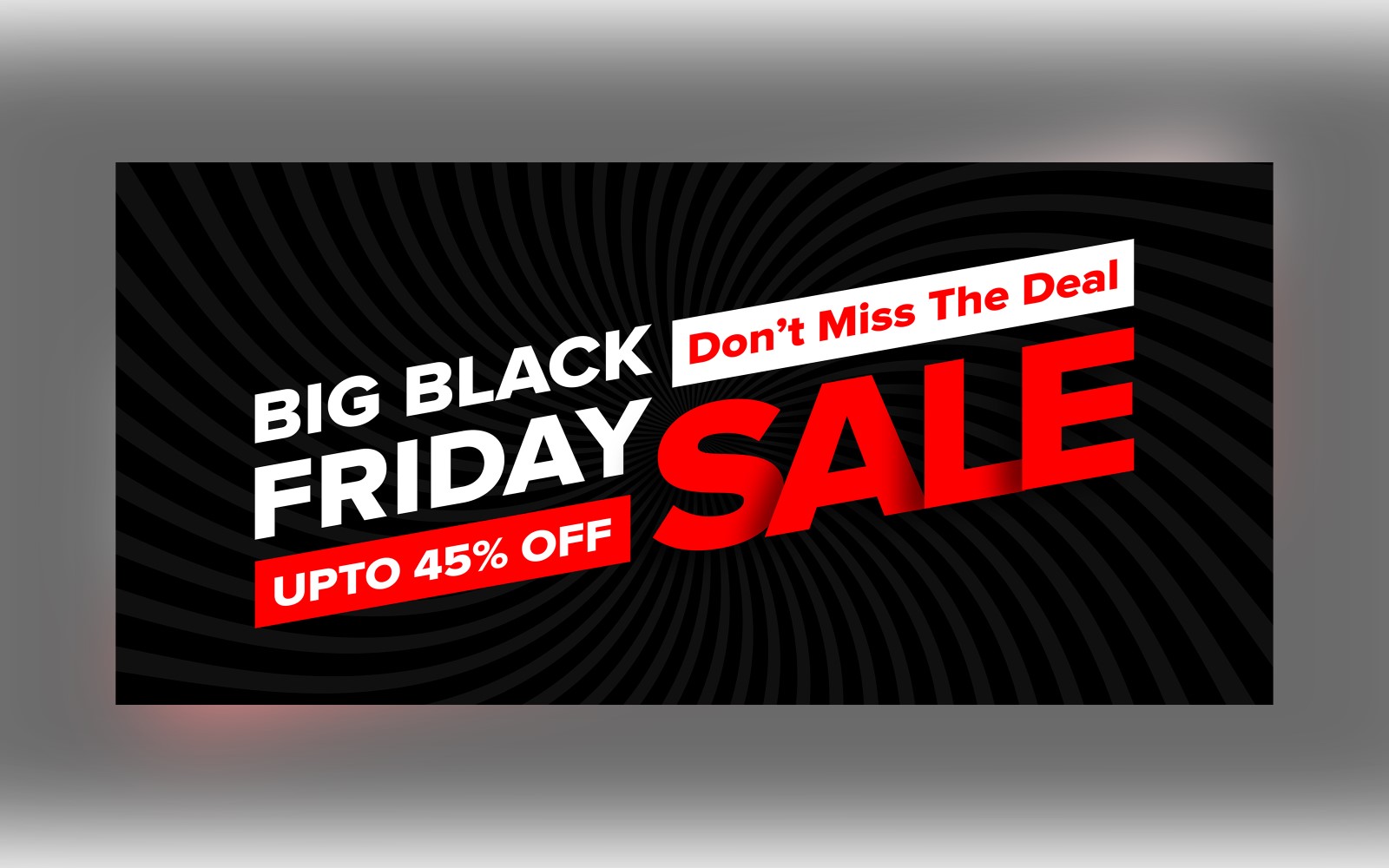 Black Friday Sale Banner With Don’t Miss The Deal Up to 45 % Off Discount Design Product Mockup