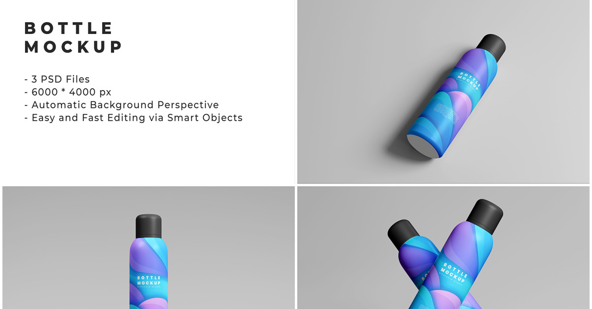3 sets of Bottle Drink Mockup, very easy to use using smart objects, all color parts are editable and objects are separate from the background.