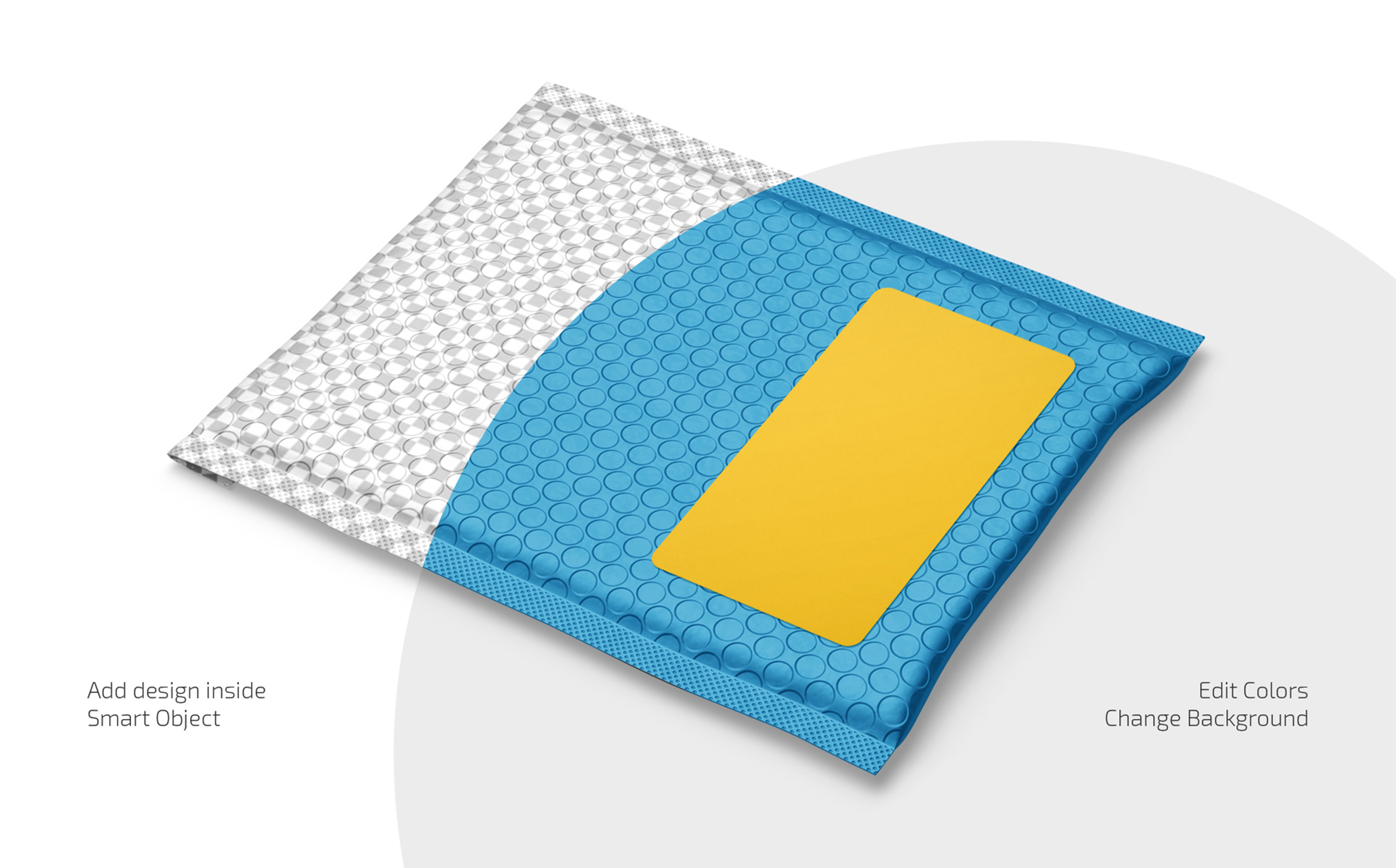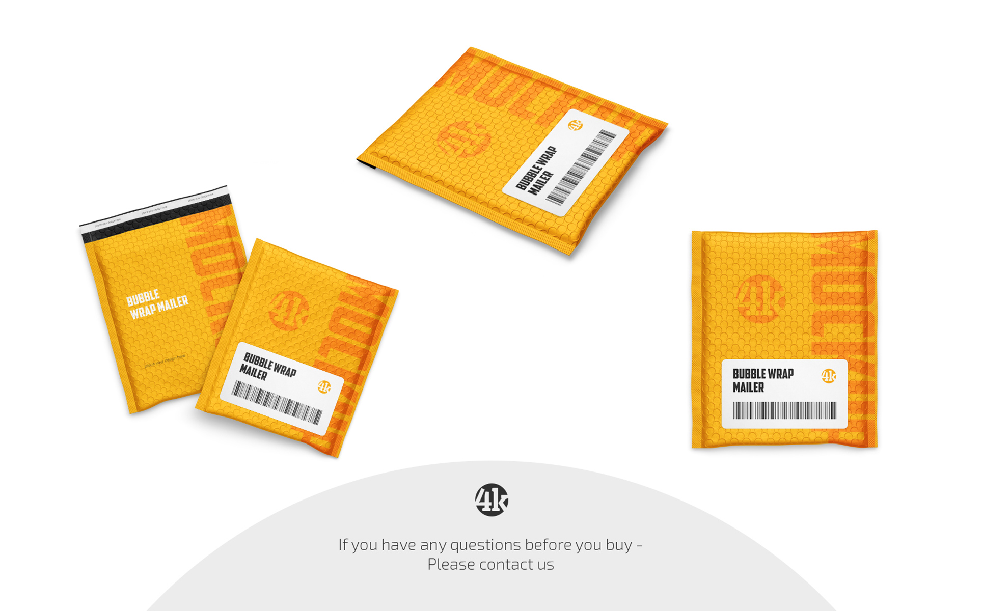 Add a logo, brand colors, and a thoughtful font — and make your shipping brand recognizable at first glance. Convincingly demonstrate that you care about every step: from the design to the moment the customer opens the parcel. Moreover, the mockup will help you stand out from competitors in the e-commerce and postal market. Don’t miss the chance to strengthen the first impression — download the Bubble Wrap Mailer Mockup Set and show that your brand starts with the packaging.