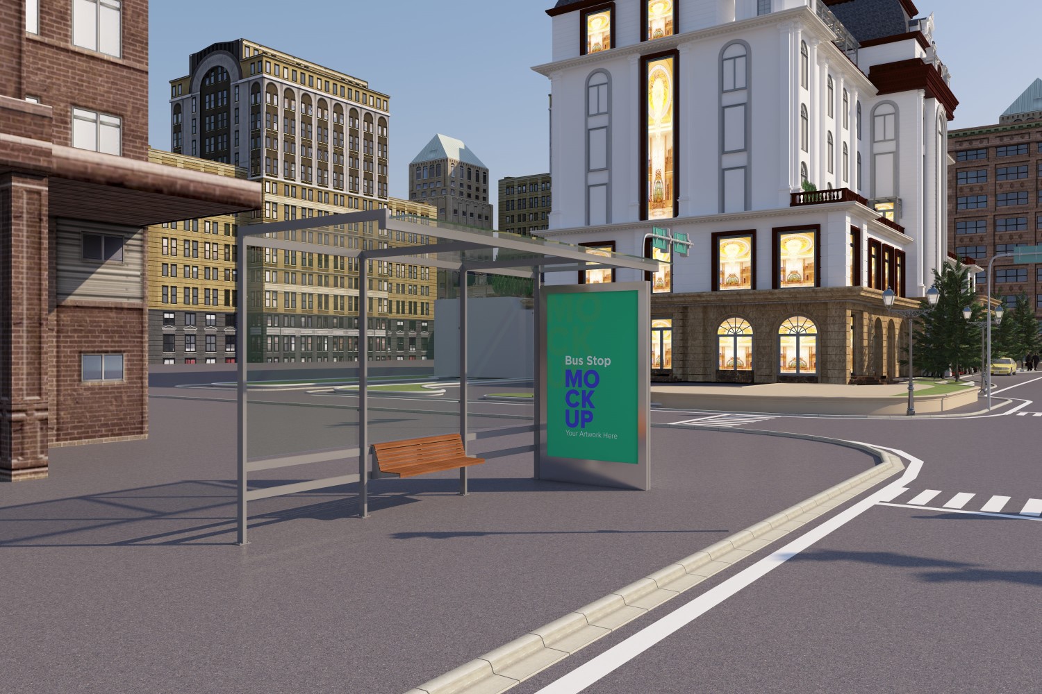 Bus Shelter Advertising Signage mock Up Template v2 Product Mockup