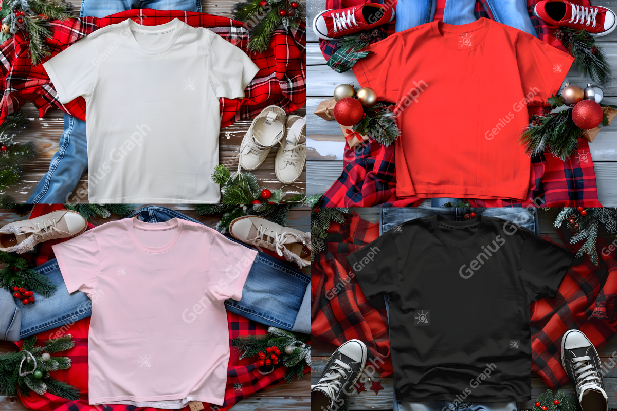 Christmas T-Shirt Mockup on Wooden Background Product Mockup