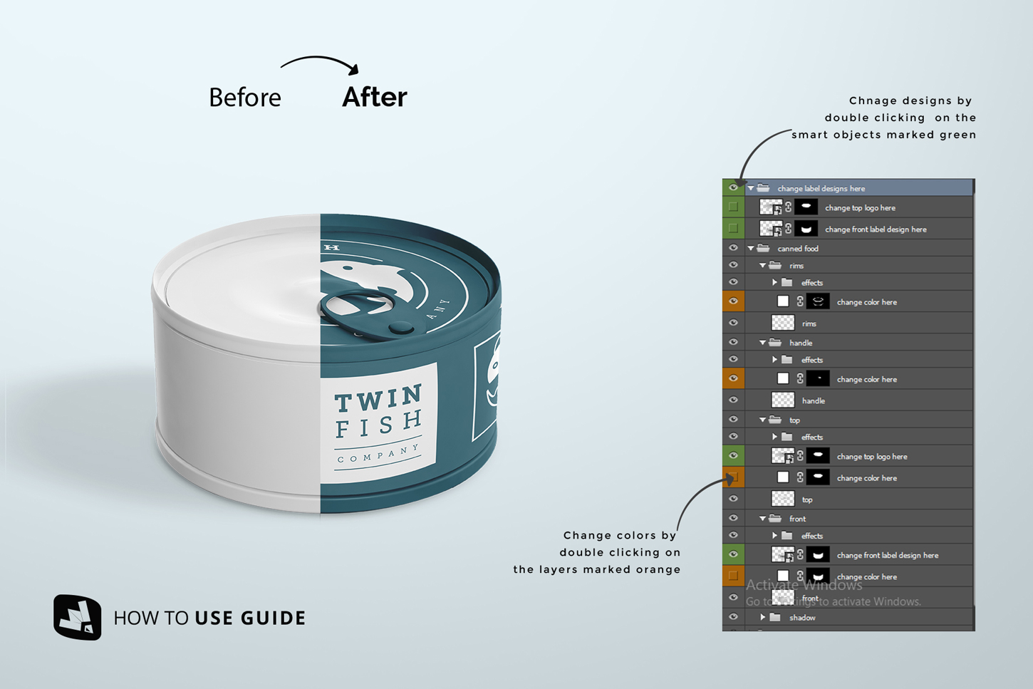 Circular Canned Food Packaging Mockup is our latest addition in food packaging mockup collection. This food packaging mockup is a great and clever way to showcase your food packaging design. The circular canned food packaging mockup is efficient and a time-saving item that gives your packaging designs full focus and the professional edge. The canned food packaging mockup has two pre-made scenes to present multiple design options to your clients. The base image is high-resolution and photo-realistic. The canned food packaging mockup comes with design shortcuts to save your valuable time. The layers are highly organized and color-coded to make your working process ease.