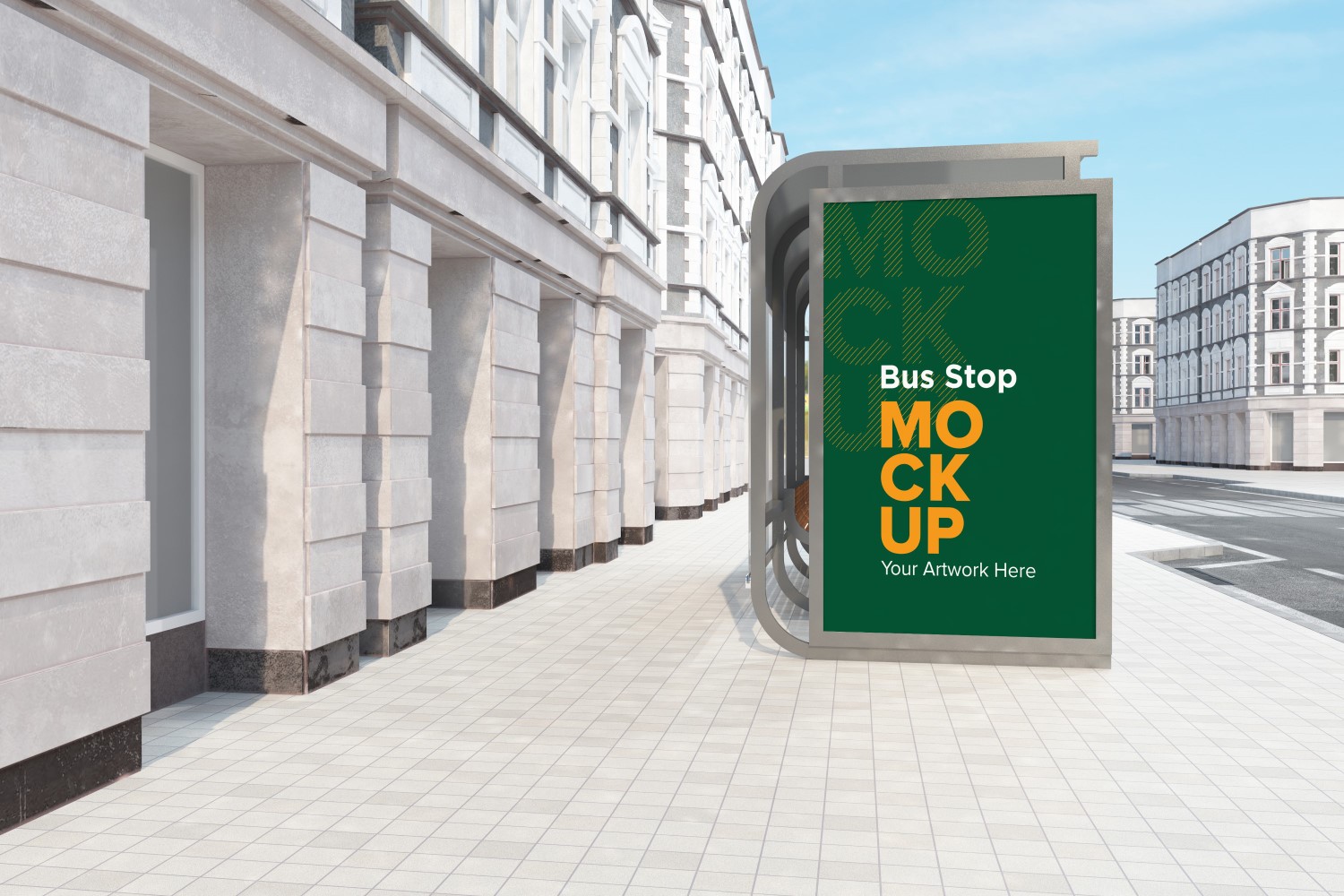City Bus Shelter Advertising Sign mockup v2 Product Mockup