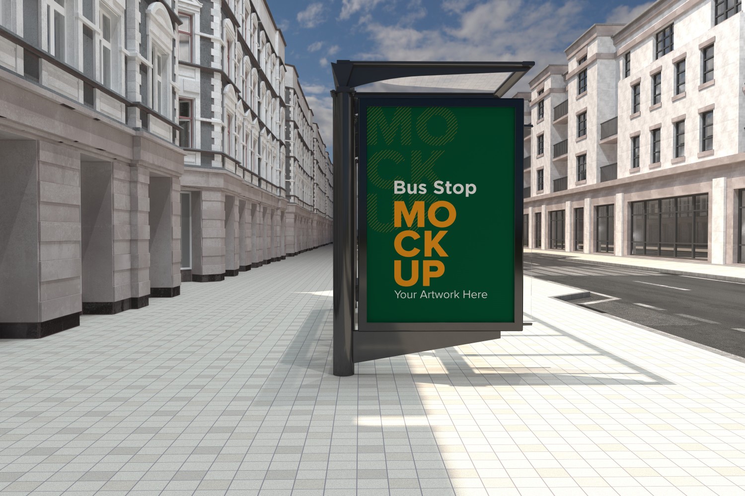 City Bus Shelter Outdoor Advertising Billboard mockup Template v2 Product Mockup