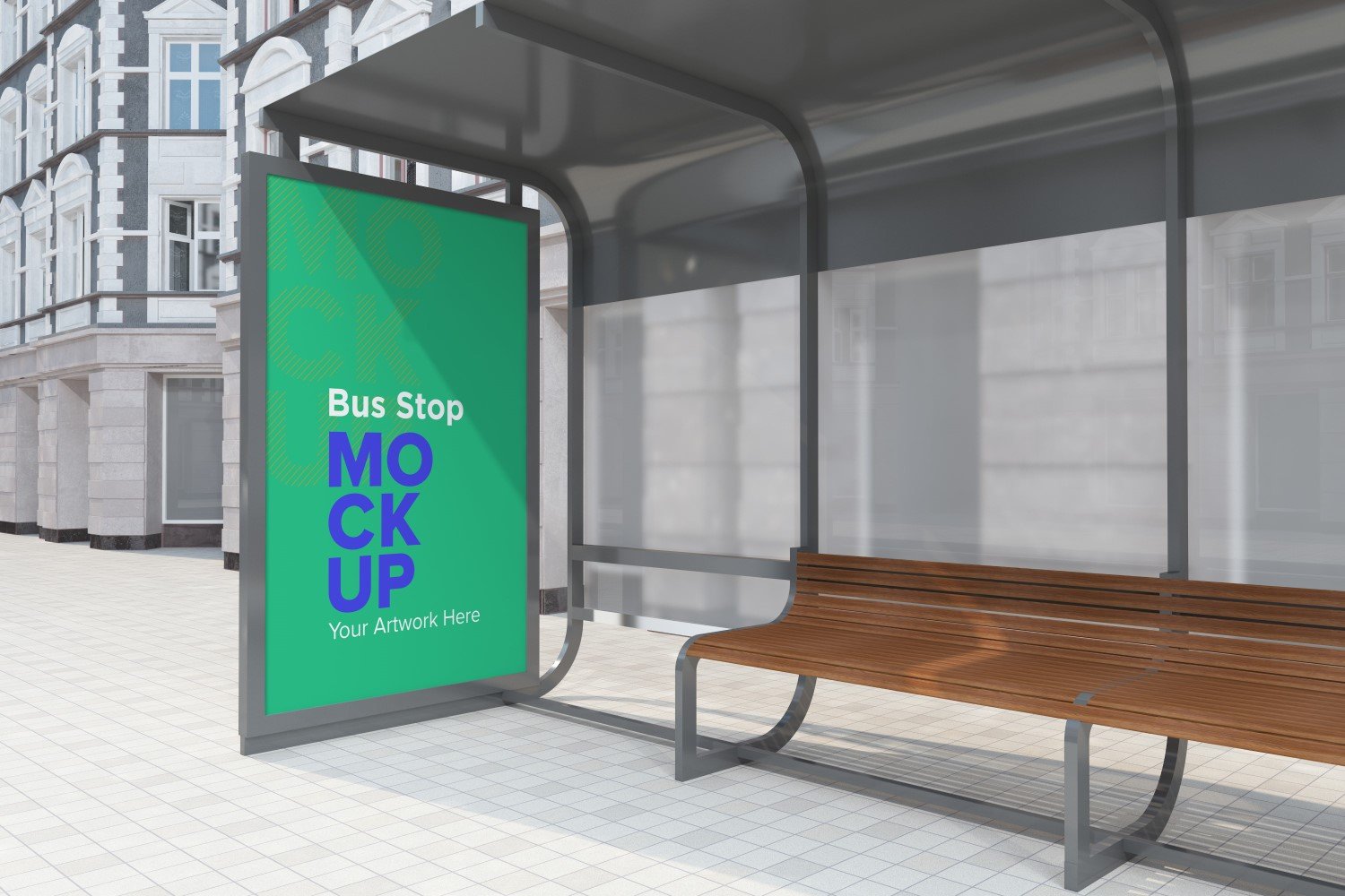 City Bus Shelter Outdoor Advertising Sign mockup v2 Product Mockup