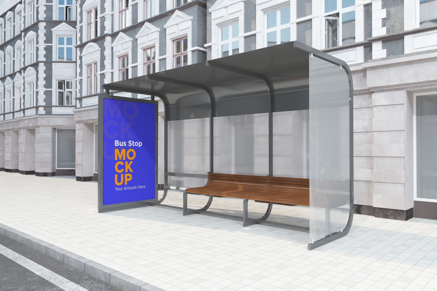 City Bus Shelter Outdoor Advertising Signage mockup v2 Product Mockup