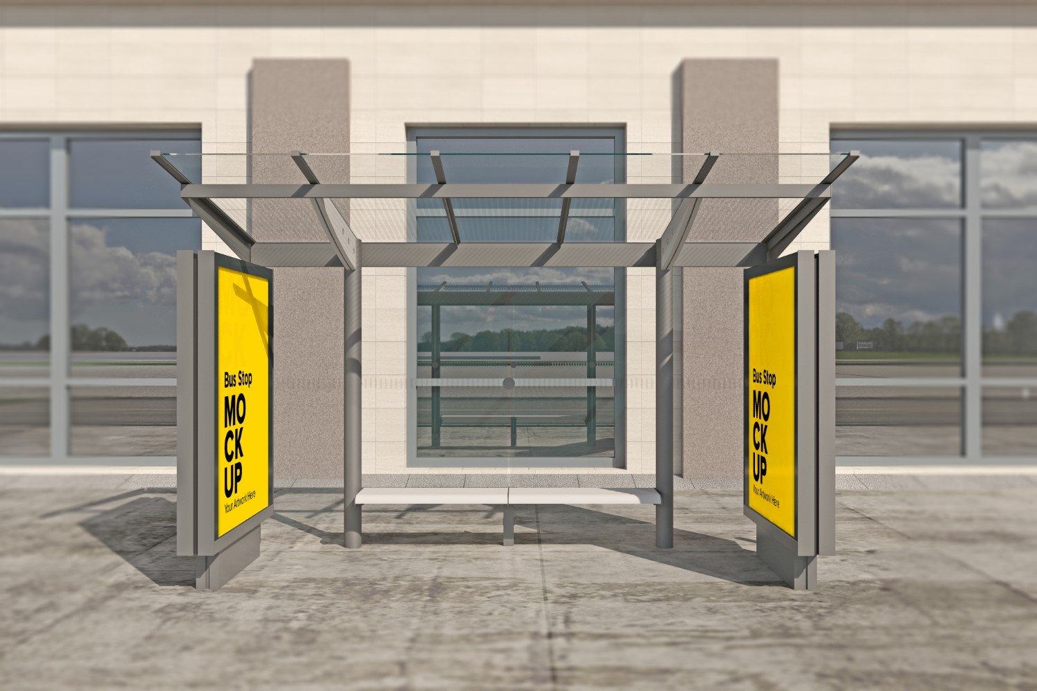 City Bus Shelter Outdoor With2 Advertising Billboard mockup Template Product Mockup