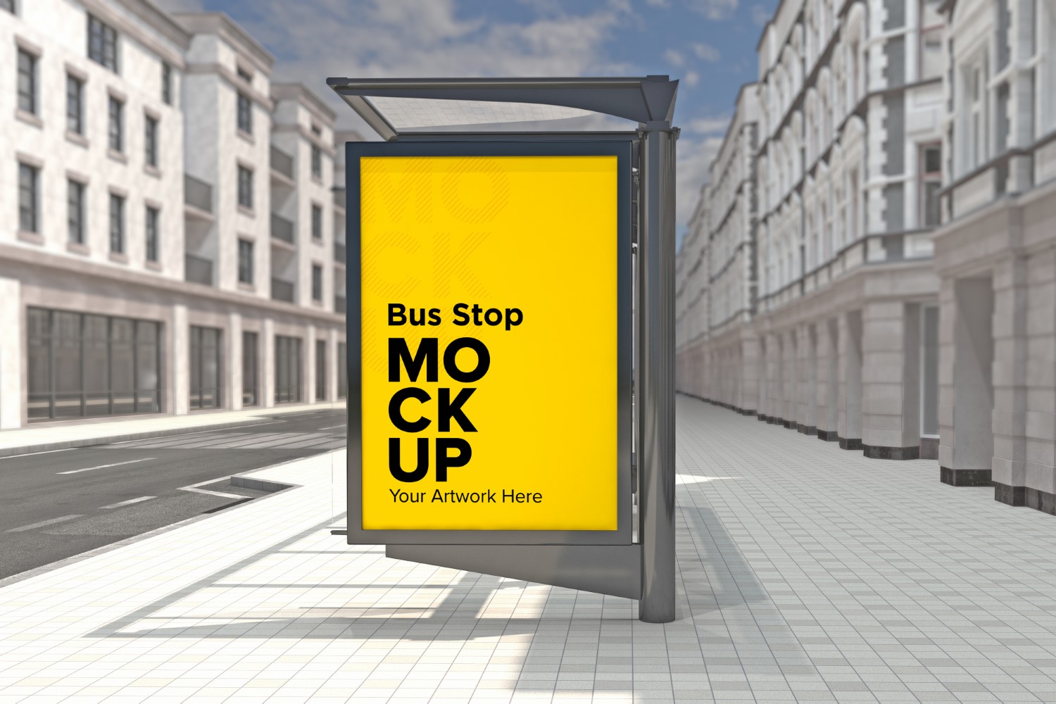 City Bus Stop Shelter With Sign Mockup Product Mockup