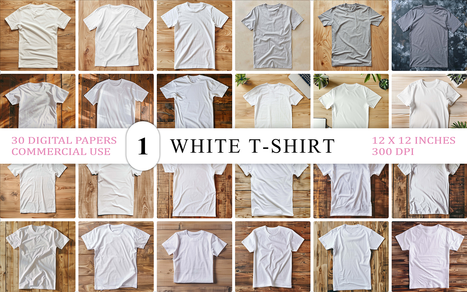 ✔ 30 Unique JPG White T-Shirt Digital Paper Backgrounds