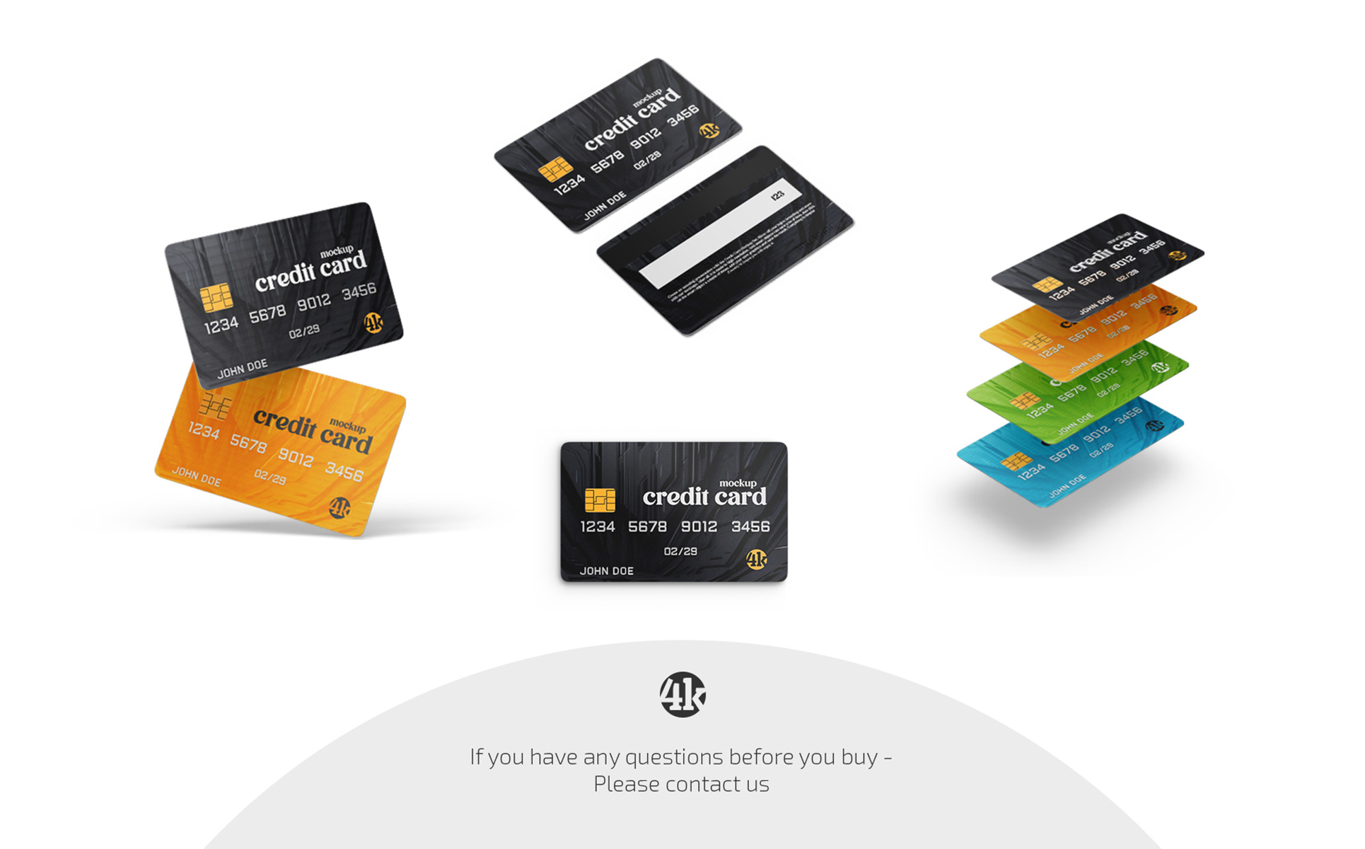 Create an amazing presentation with the Credit Card Mockup Set. Show off your logos, branding and more with our mockups. After all, it is made in high resolution. And smart objects can save a lot of time. Just click on the smart object a couple of times, add your own graphics and save the result. Everything is simple! Country4k hopes you will enjoy it.