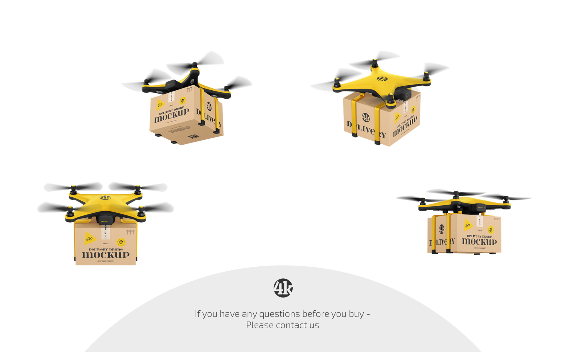 Create an amazing presentation with the Delivery Drone Mockup Set. Show off your logos, branding and more with our mockups. After all, it is made in high resolution. And smart objects can save a lot of time. Just click on the smart object a couple of times, add your own graphics and save the result. Everything is simple! Country4k hopes you will enjoy it.