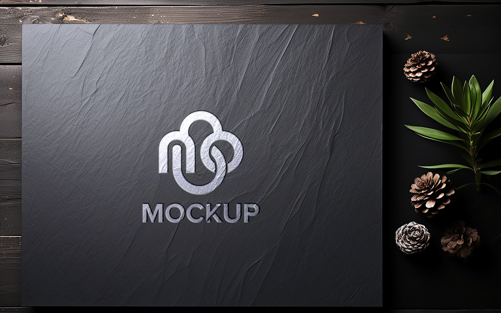 Embossed silver logo mockup on dark paper texture metal logo mockup on paper texture Product Mockup