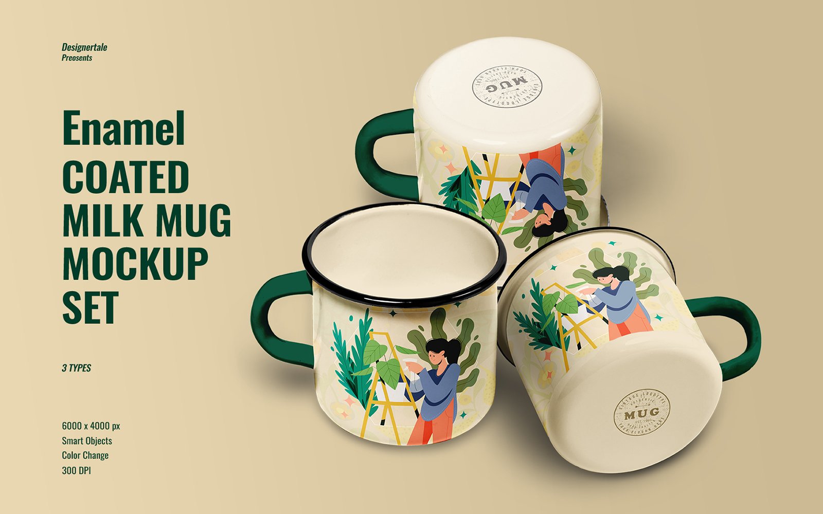 Enamel Coated Milk Mug Mockup Set Product Mockup