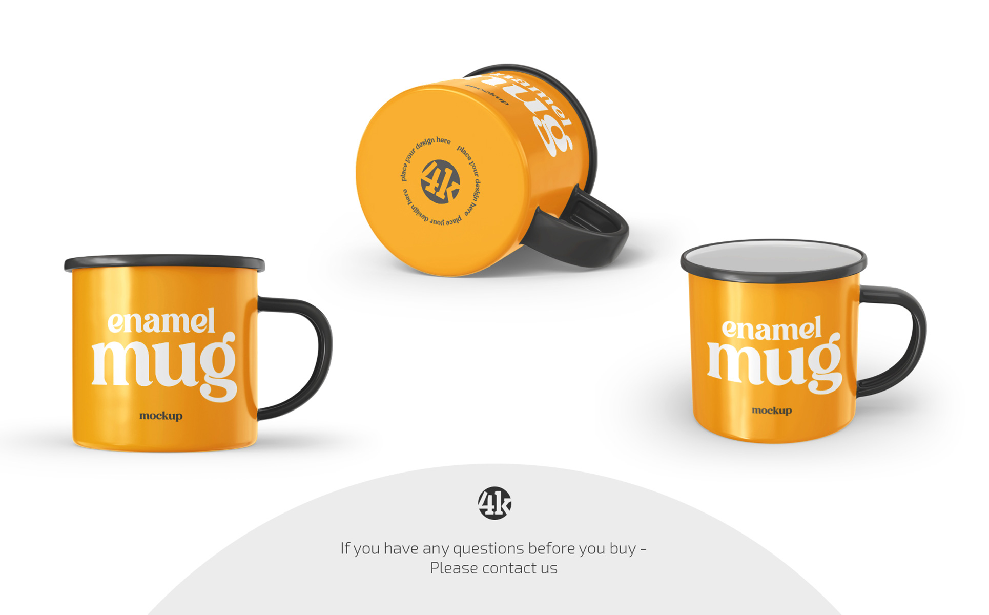 Create an amazing presentation with the Enamel Mug Mockup Set. Show off your logos, branding and more with our mockups. After all, it is made in high resolution. And smart objects can save a lot of time. Therefore, just click on the smart object a couple of times, add your own graphics and save the result. Everything is simple! Country4k hopes you will enjoy it.
