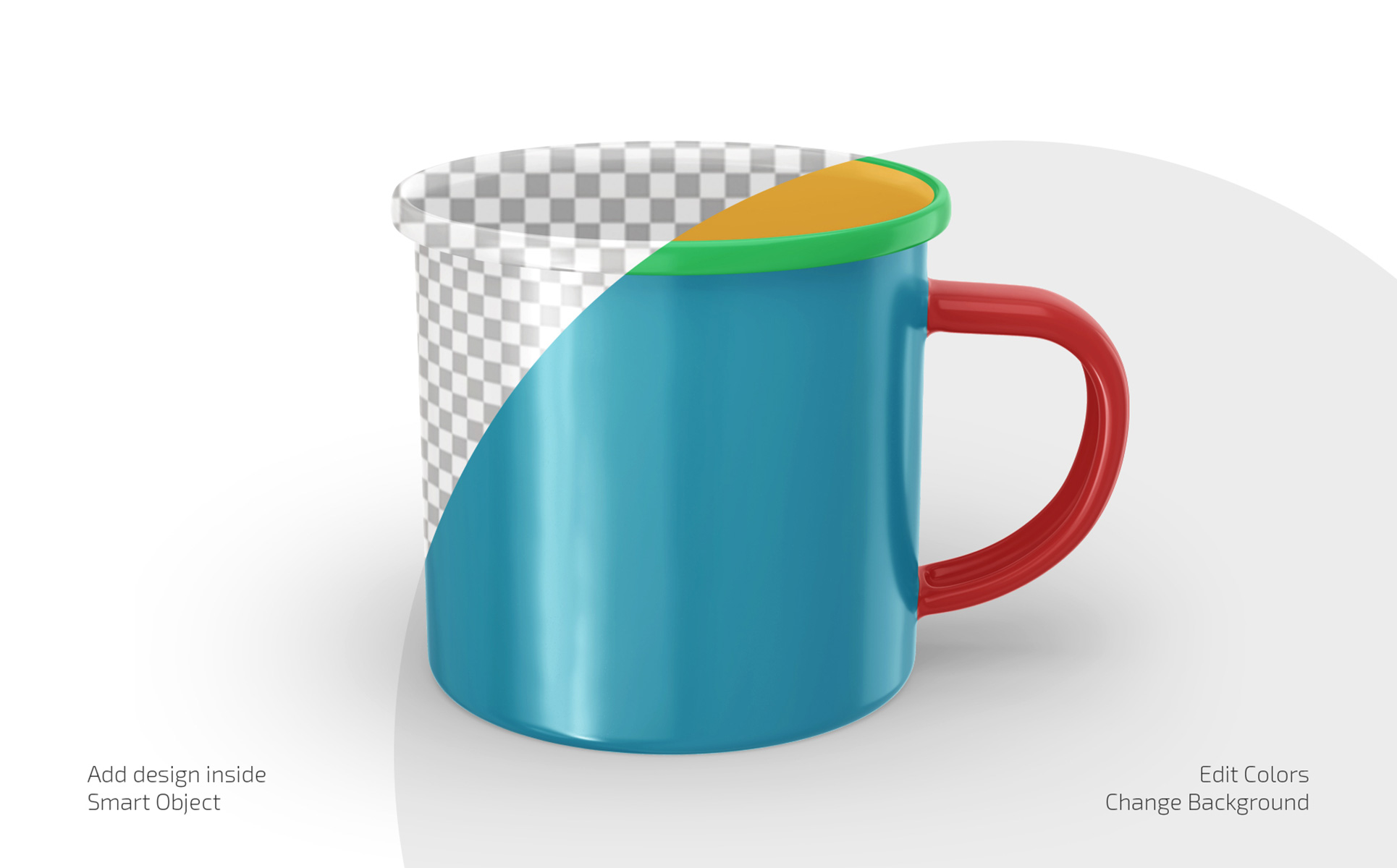 Use the perfect canvas to showcase branding, logos, typography or unique illustrations on the iconic enamel mug. After all, our mockup is perfect for stylish and memorable souvenirs. Give the design volume and credibility that will catch the eye at first glance.