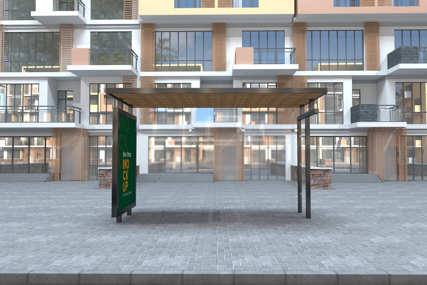 Evening View City Bus Stop Sign mock Up Template v2 Product Mockup