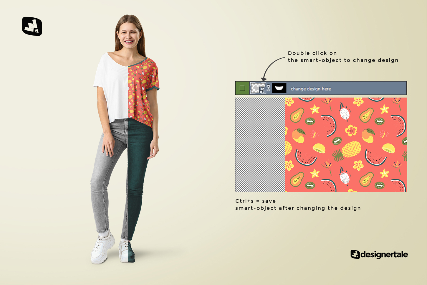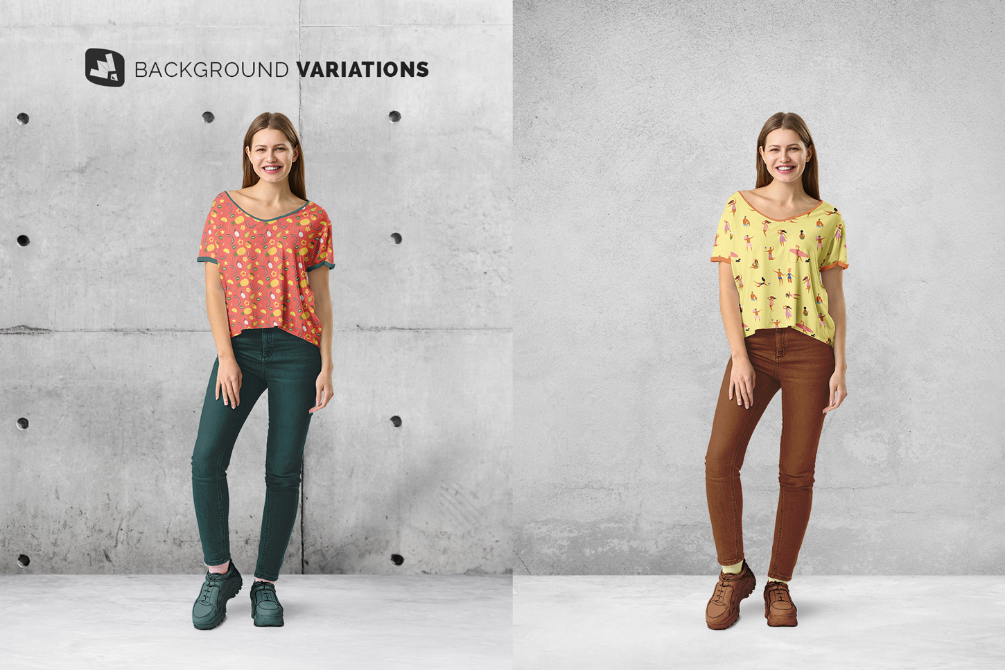 Casual everyday outfits are our daily necessity and also a great way to showcase your patterns in a very realistic fashion. The female everyday outfit mockup goes with every background. This female everyday outfit mockup is our latest addition to our women’s’ outfit collection. The women’s casual outfit mockup is customizable in every way. The top rim, sleeves, the pants, socks and the shoes are color changeable to match your pattern design. The apparel mockup base image is high-resolution and has photo-realistic effects to draw attention to your pattern designs. Color-coded and perfectly organized layers make your work smooth. The design shortcuts are very easy to use and save you a lot of time. A great collective item.