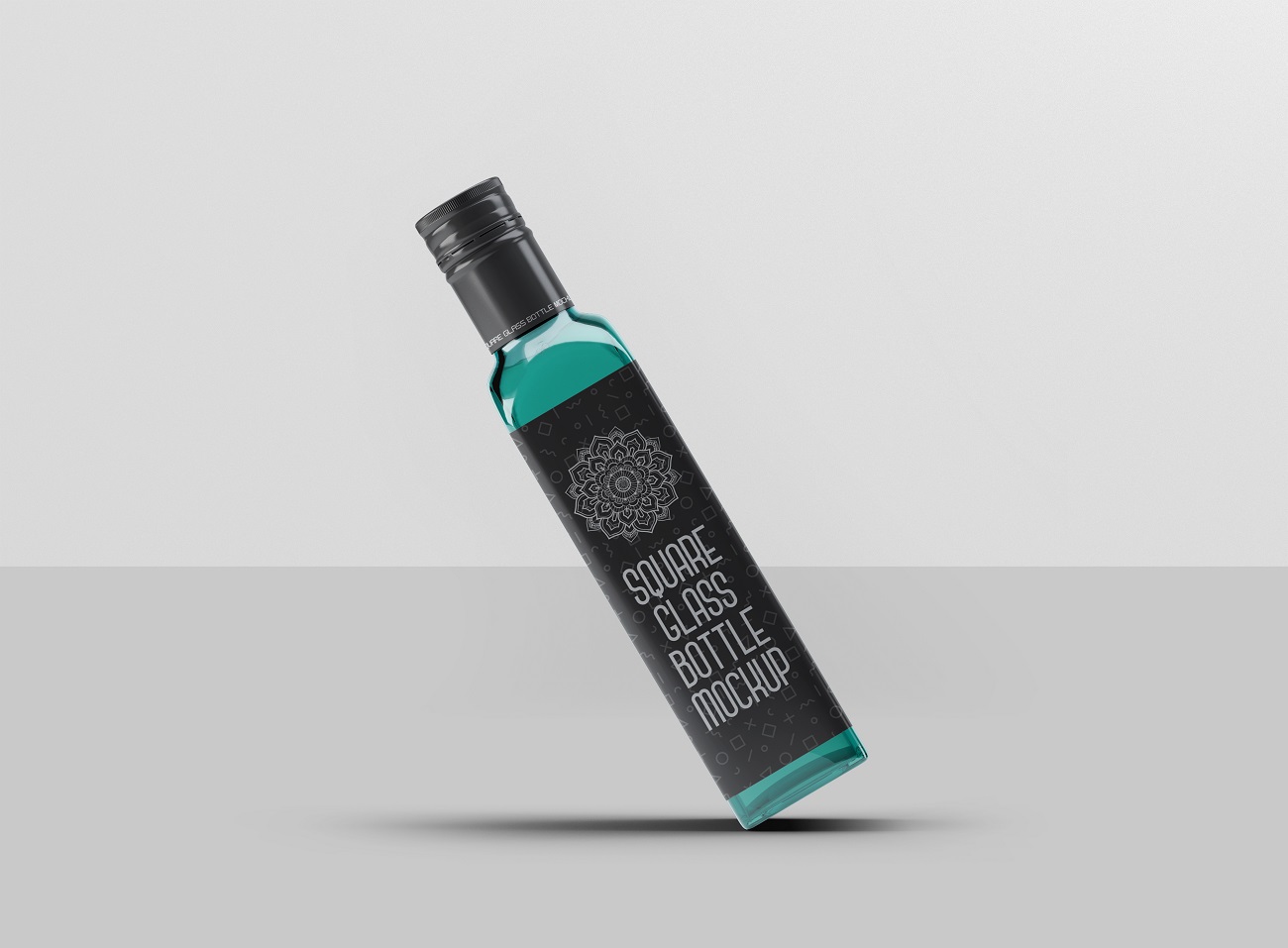Glass Bottle - Square Glass Bottle Mockup 4 Product Mockup