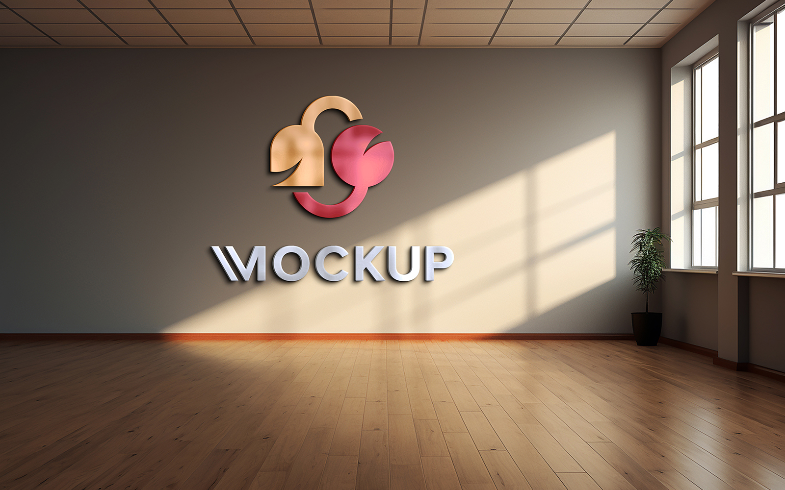 Glass logo mockup on indoor brown wall sign mockup photorealistic psd Product Mockup