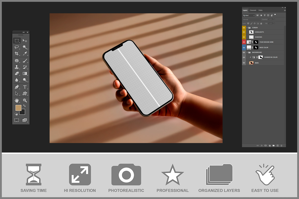 Just drag and drop into the Smart Object. With high resolution (4000 x 3000 px), this mockup is detailed, easy to use, and perfect for saving time and effort.
