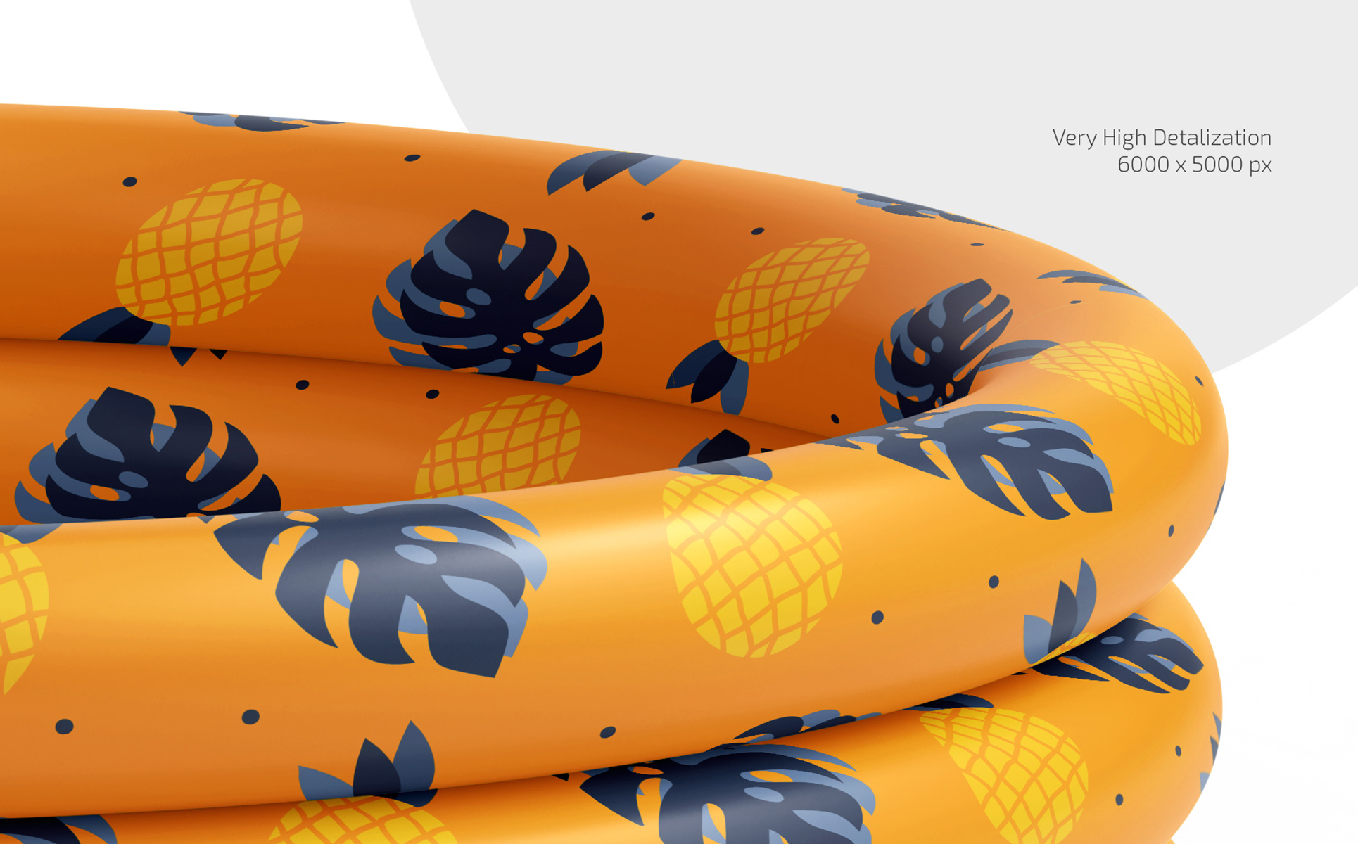 Children’s, beach, and summer collection designers actively use such mockups in marketing materials, catalog shoots, and landing pages. Don’t miss the opportunity to make your product noticeable and desirable. Download the Inflatable Pool Mockup Set to inspire the customer to buy at first sight.