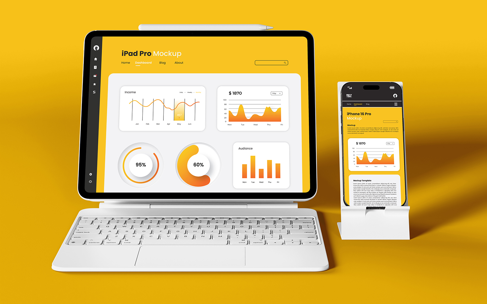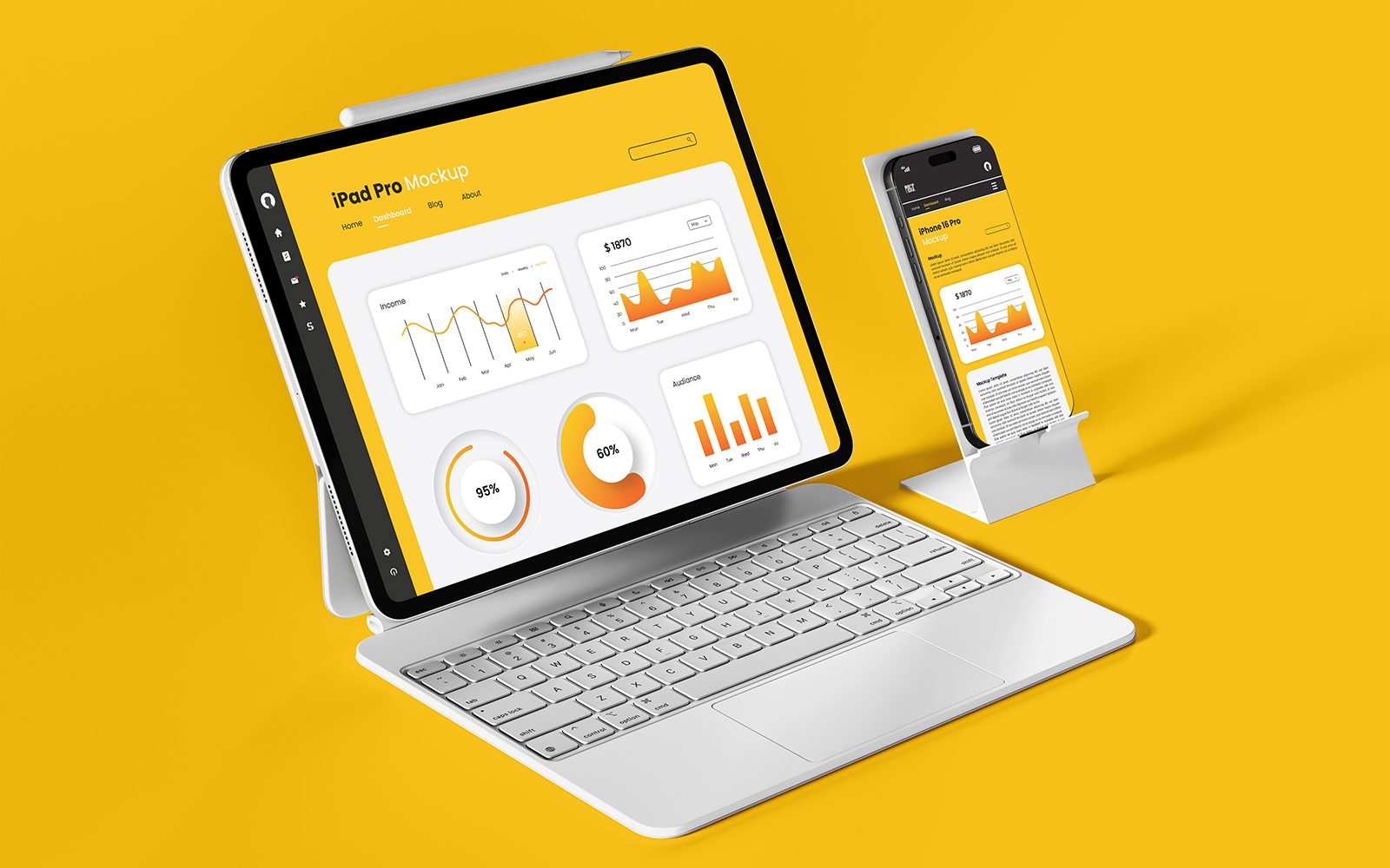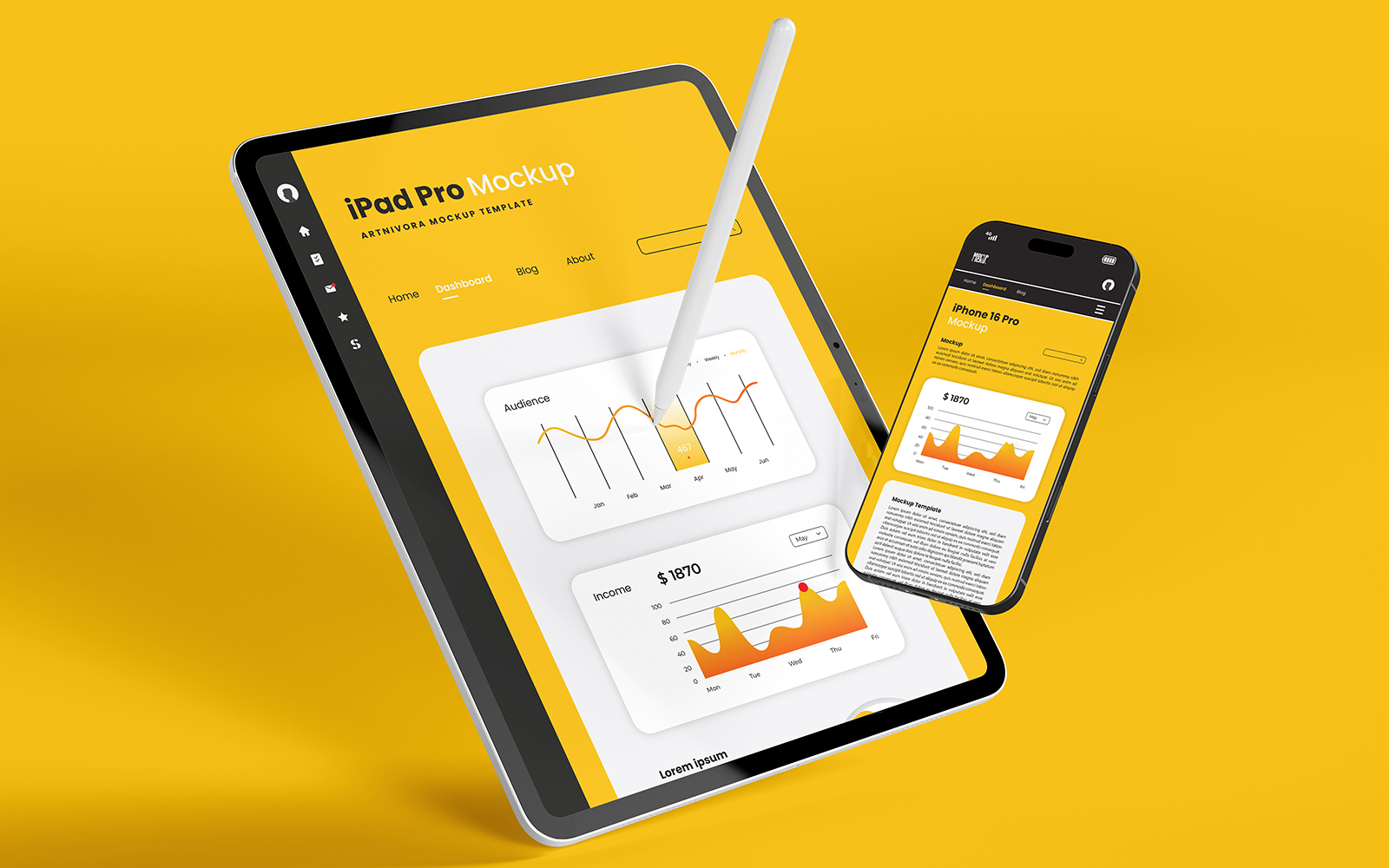 iPad & iPhone Mockup Sets – Realistic Apple Device PSD Templates for App and UI Showcase